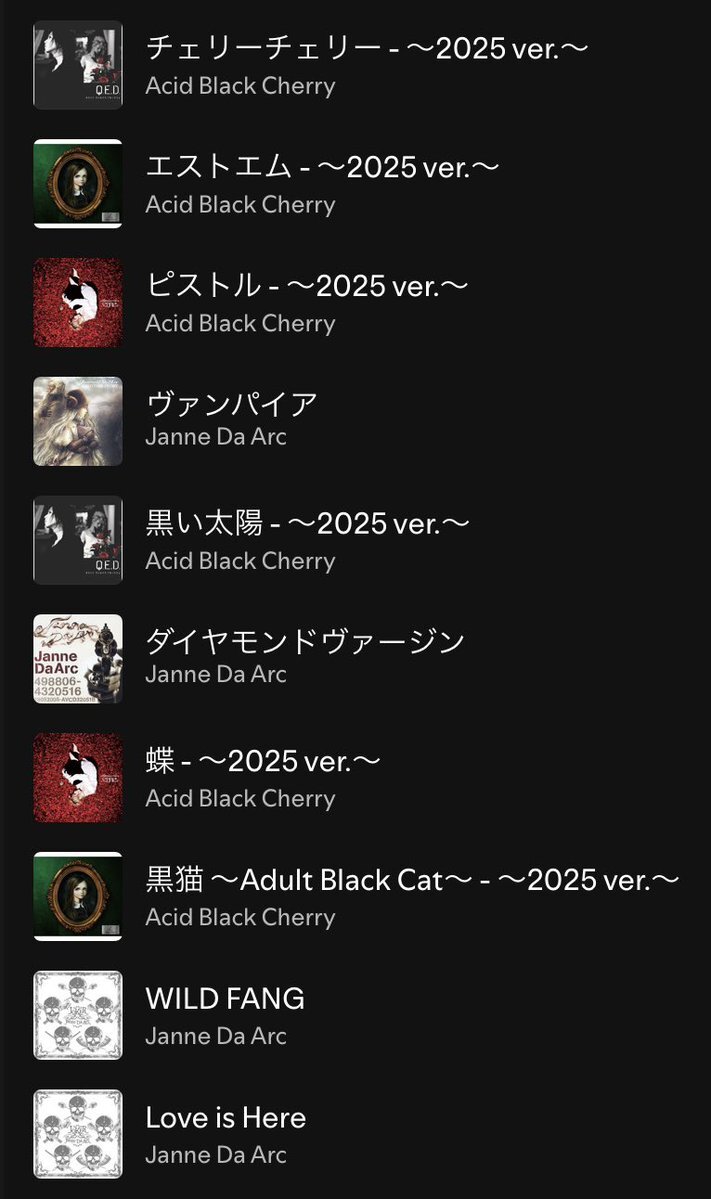 #プレイリスト #AcidBlackCherry #yasu #JanneDaArc 最近ずっと聴いてる曲です 特にこの2曲は鬼リピ チェリーチェリー エストエム 推しがヴァンパイアのカバーをしていて興味を持ったのですが… 過激な歌詞に天使の歌声と美しいビジュ こんなに沼るとは…笑 元気な復帰をお祈りしています🙏 pic.x.com/ZngFWUxjv1