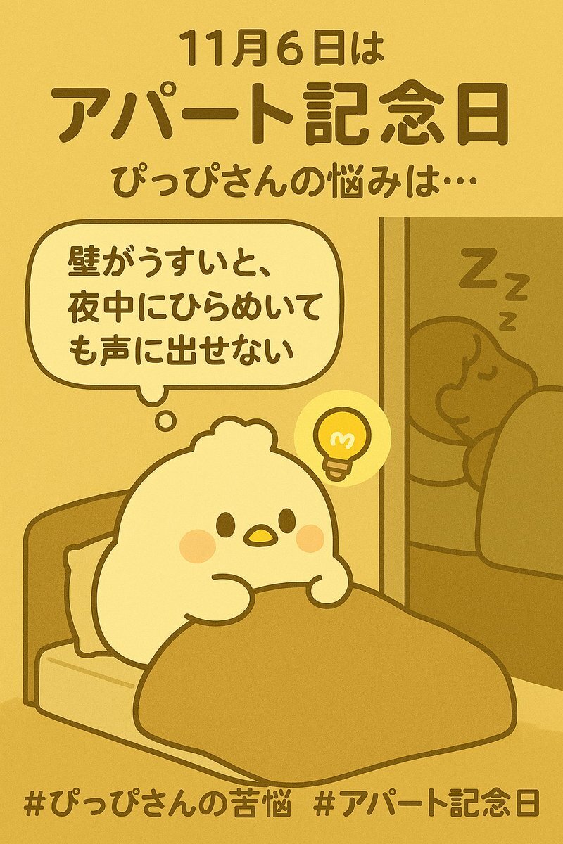 📅11月6日は アパート記念日 ぴっぴさんの悩みはと聞いてみたら… 「壁が薄いと、夜中にひらめいても声に出せない」😢 だから心の中で「ぴこーん✨」って呟いてます え、生成AIの悩みがこれ! --- ↓ mainくん制作メモ更新中: note.com/mainkun_ebook #mainくん #java絵本 #アパート記念日 pic.x.com/LcCTrsHps7