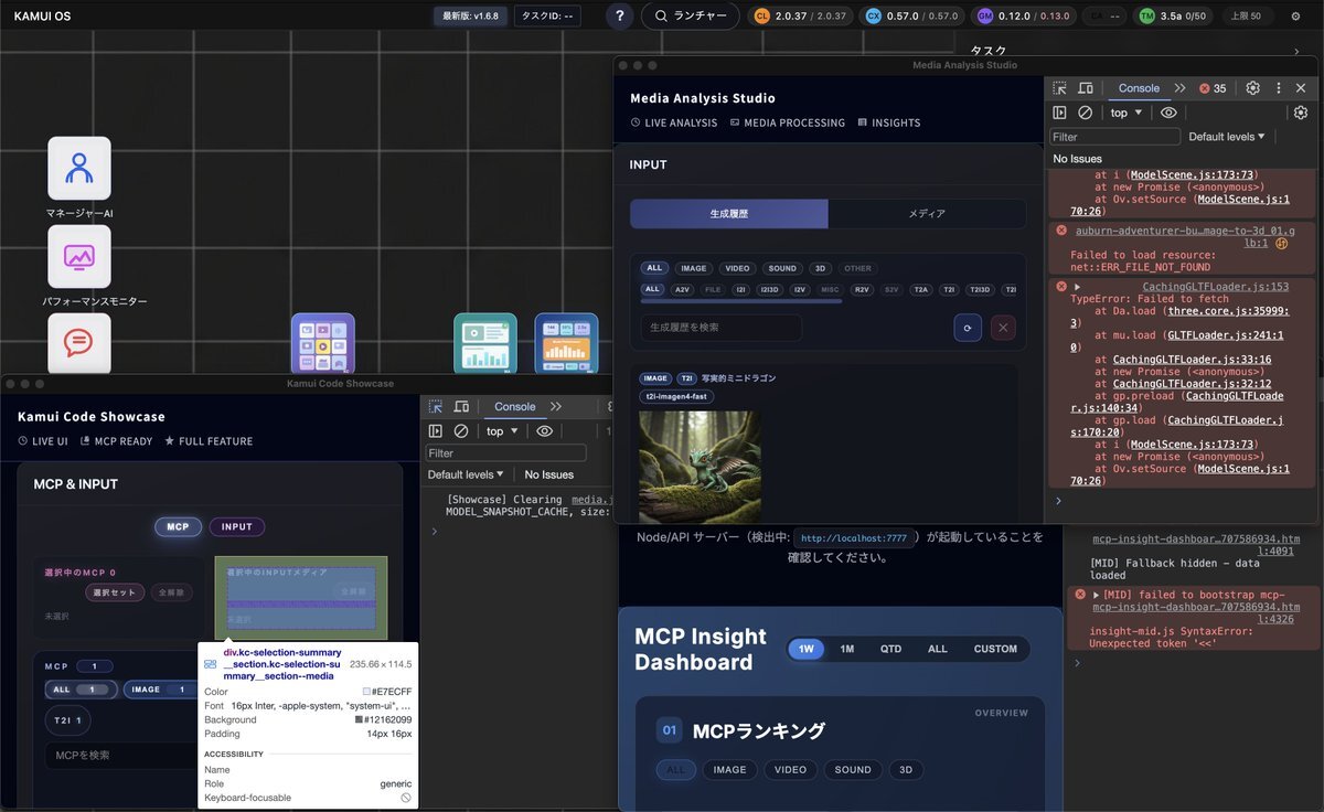 ブラウザ版kamuiosのSaaSを、デスクトップ版kamuios内アプリに移植中。 #kamuios アプリごとに開発者ツール出せるのかなりありがたいです…🥹 pic.x.com/F4hXibPvNG