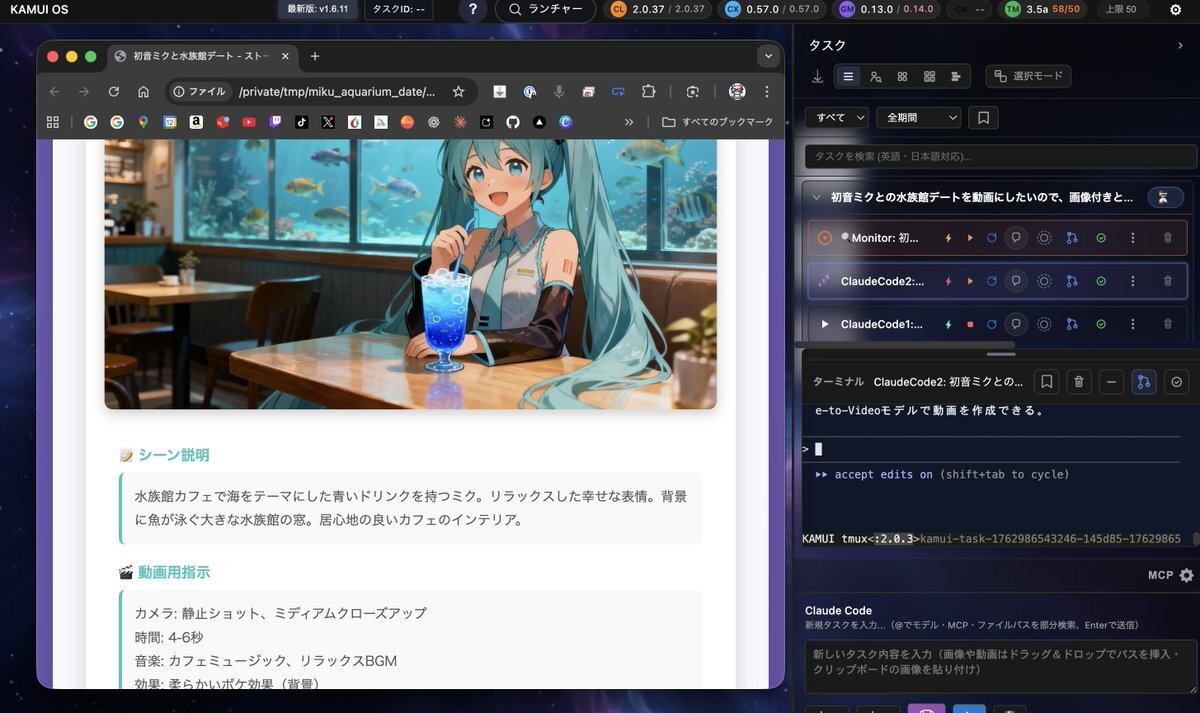 #kamuios エージェントがそれぞれ予告編を完成⭐ *途中から音鳴ります kamui os のターミナルでLinuxに入って作りました。 2枚の画像からclaude codeがシナリオを書いて 必要な画像やBGMやナレーションを生成し 5本の動画を作り編集まで一気に。 pic.x.com/DUbsrcztIb