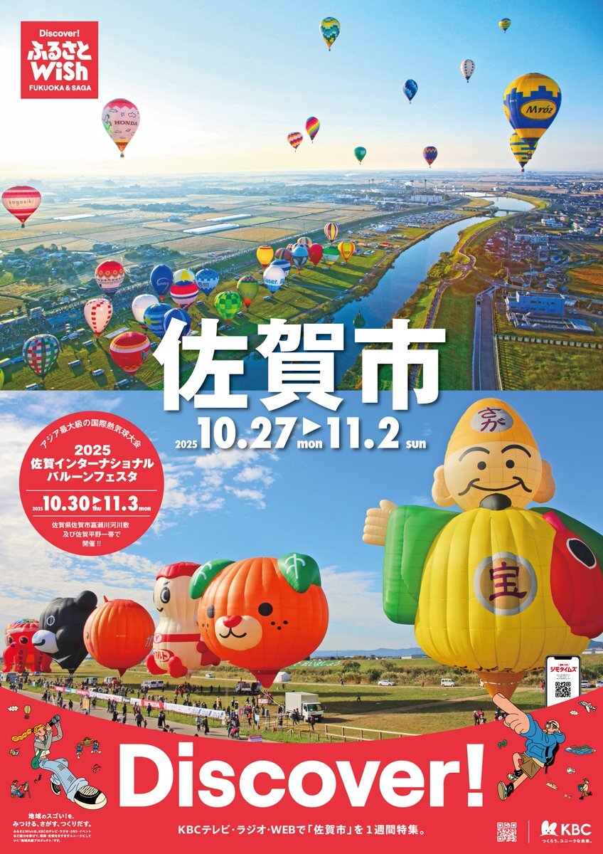 #佐賀市 の魅力がたっぷり!✨ #KBC九州朝日放送「#ふるさとWish」に登場!🎥 📅 10月27日(月)~11月2日(日)の1週間 KBCの「ふるさとWish」で佐賀市が特集されます! 今回は、#佐賀インターナショナルバルーンフェスタ(10/30~11/3)を中心に、 pic.x.com/sRO7TFVEgx