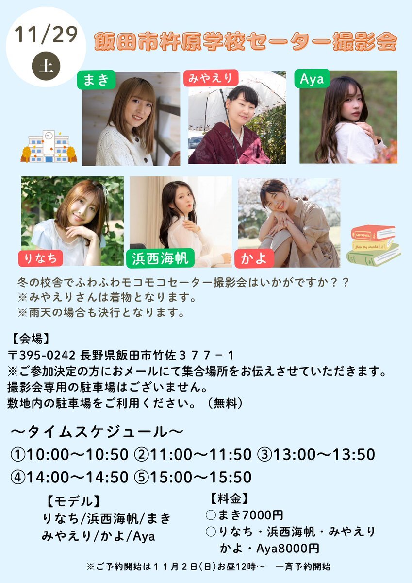 【KIWI撮影会】11月の撮影会📸 cr-reserve.e-shops.jp/reserve/menu/2… ⬆️りなちのご予約先はこちら 本日11/2の12時〜ご予約開始💡 ぜひご予約お待ちしております☺️ #撮影会 #長野県 #信州ご当地アイドル #りなち #KIWI撮影会 #飯田市