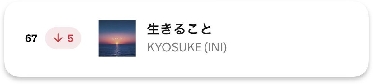 🟢Spotify Viral Songs Japan🇯🇵 前日6️⃣7️⃣位→7️⃣4️⃣位⤵️ 7ランクダウン💦😭 KYOSUKE(INI)-生きること 2025.11.20 Total days on chart30 streak15 promocards.byspotify.com/api/share/aa5d… #Spotify_INI #INI #INI_STUDIO #藤牧京介 #FUJIMAKIKYOSUKE #KYOSUKE生きること