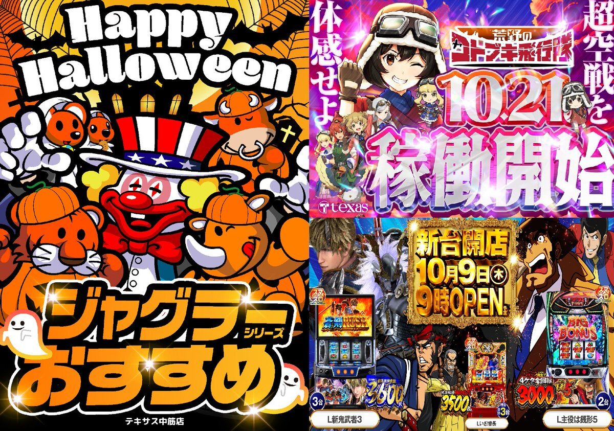 #テキサス中筋店 です 🔥本日も22:45まで営業🔥 🆕新台🆕 #Lコトブキ #L鬼武者 #L主役は銭形5 好評稼働中💕です 🤡おすすめ🤡 #ジャグラーシリーズ 🔥MAXタイプ🔥 #e牙狼12 #e東京喰種 も是非是非どうぞ🥰 pic.x.com/ABj2S3KmCW
