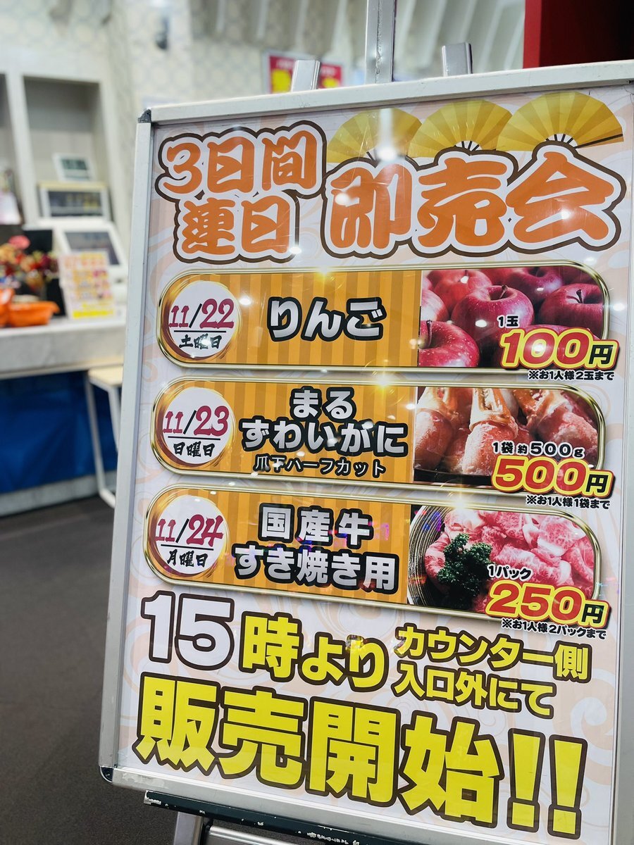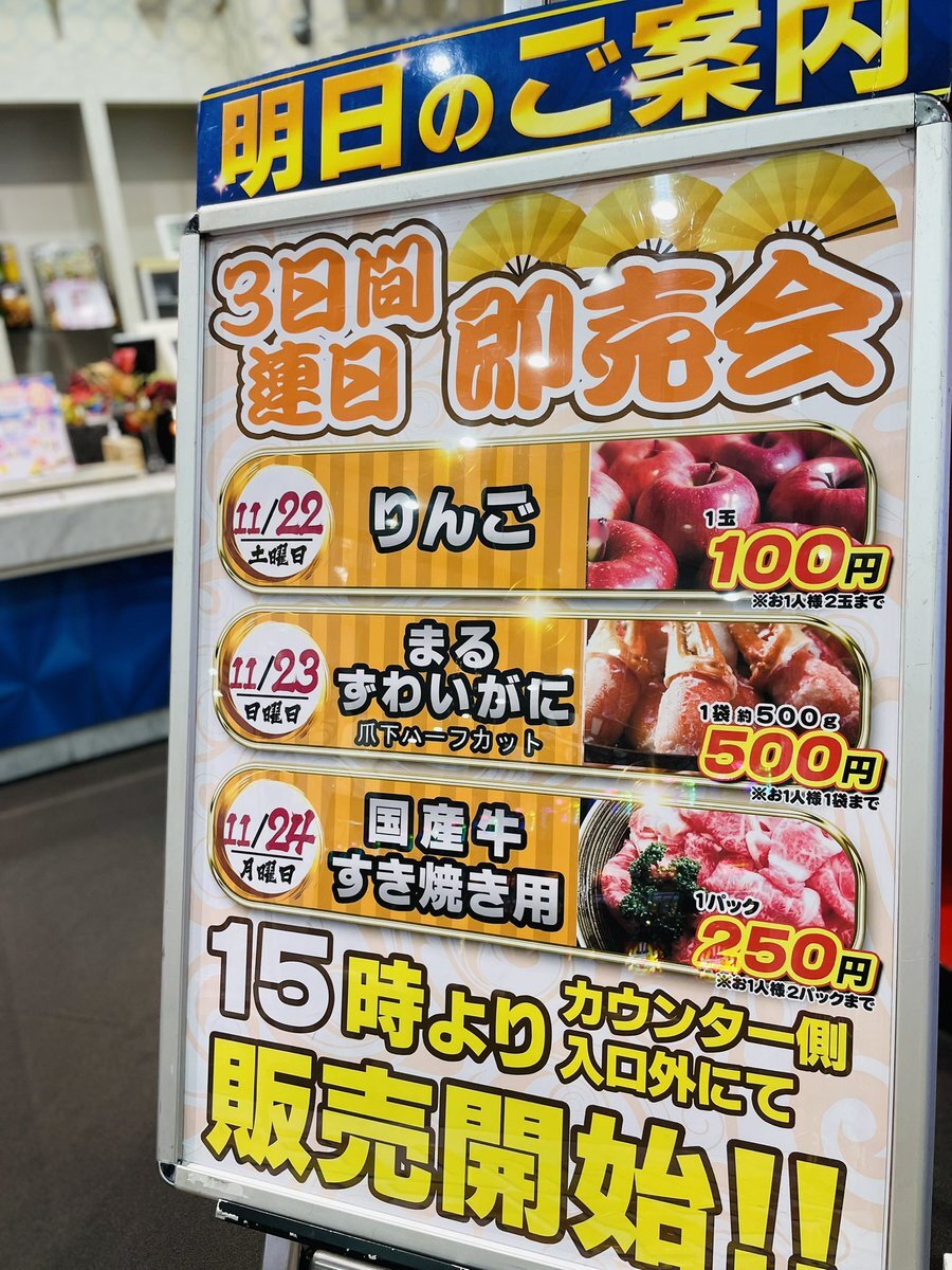 おはようございます☀️ 21日(金)🔥10時OPEN🔥 18日〜 #Lネオプラネット #Pメイドインアビス 導入中! ♡おすすめ機種❣️ #エヴァ咆哮 #L北斗の拳 #甲鉄城のカバネリ 明日から ♡3日間連日即売会開催❣️ #りんご #まるずわいがに #国産牛すき焼き用 週末はぜひウイング下郡店へ♡ pic.x.com/WqxcBZI6zA