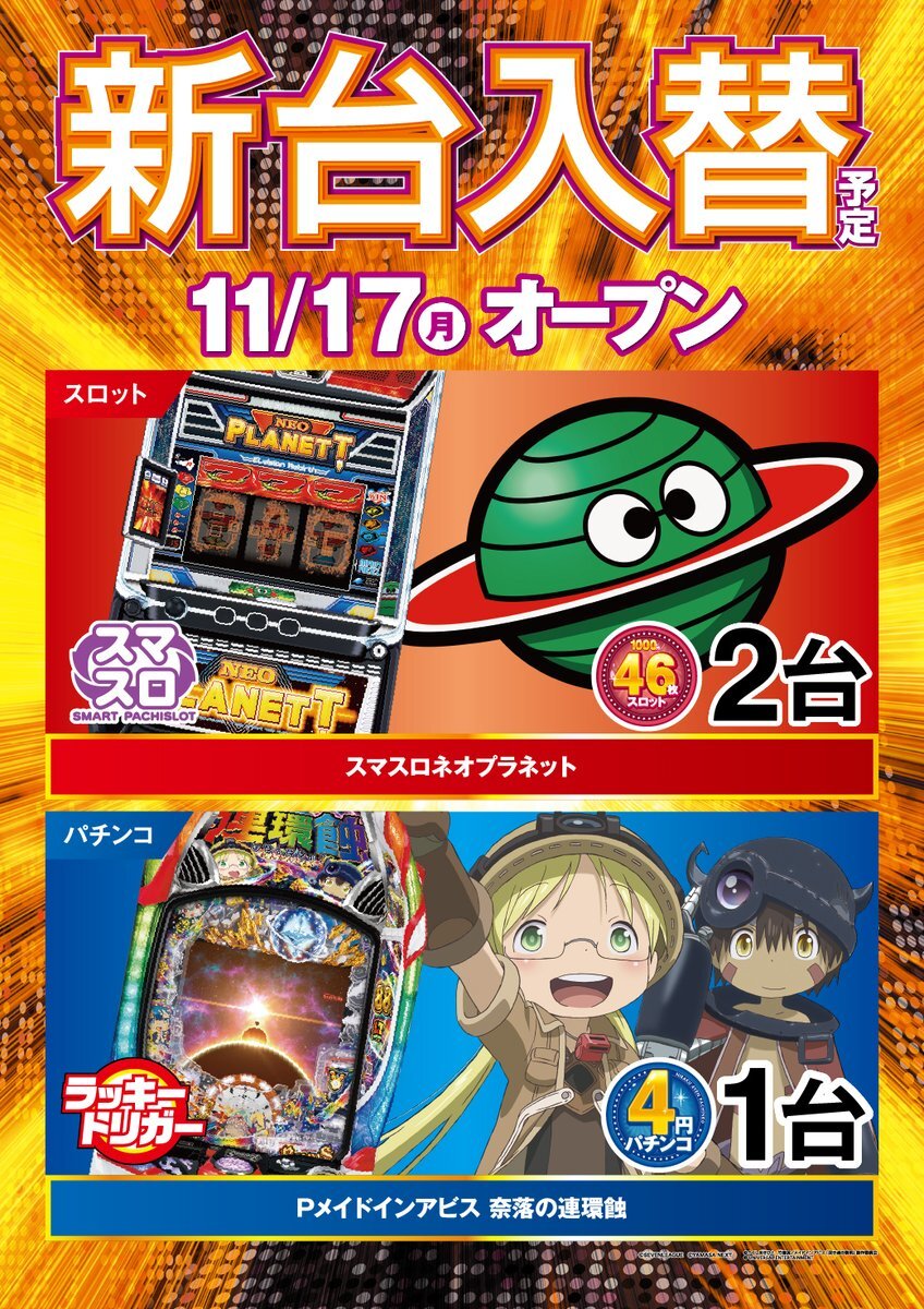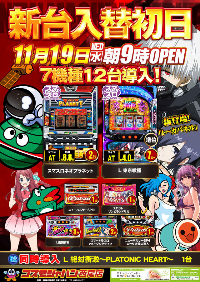🌈11月18日 新台お披露目 17時開店予定 7機種12台新登場🌈@cosmo_nishio