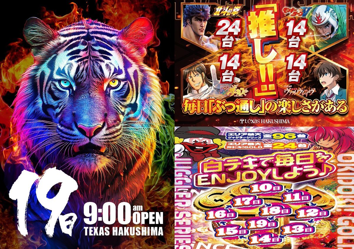 こんばんは🌙 #テキサス中筋店 です 明日1⃣0⃣月2⃣6⃣日(日) 🌈全館連日9⃣時開店🌈  ⏰抽選は8:30~⏰ 🤡#ジャグラーシリーズ🤡 ⇨⇨✨おすすめ✨ 🤡【推】🌺もお忘れなく♪ 明日も中テキで 🔥【腰を据えて】🔥お楽しみアレ♪ 皆様のご来店お待ちしております🤩