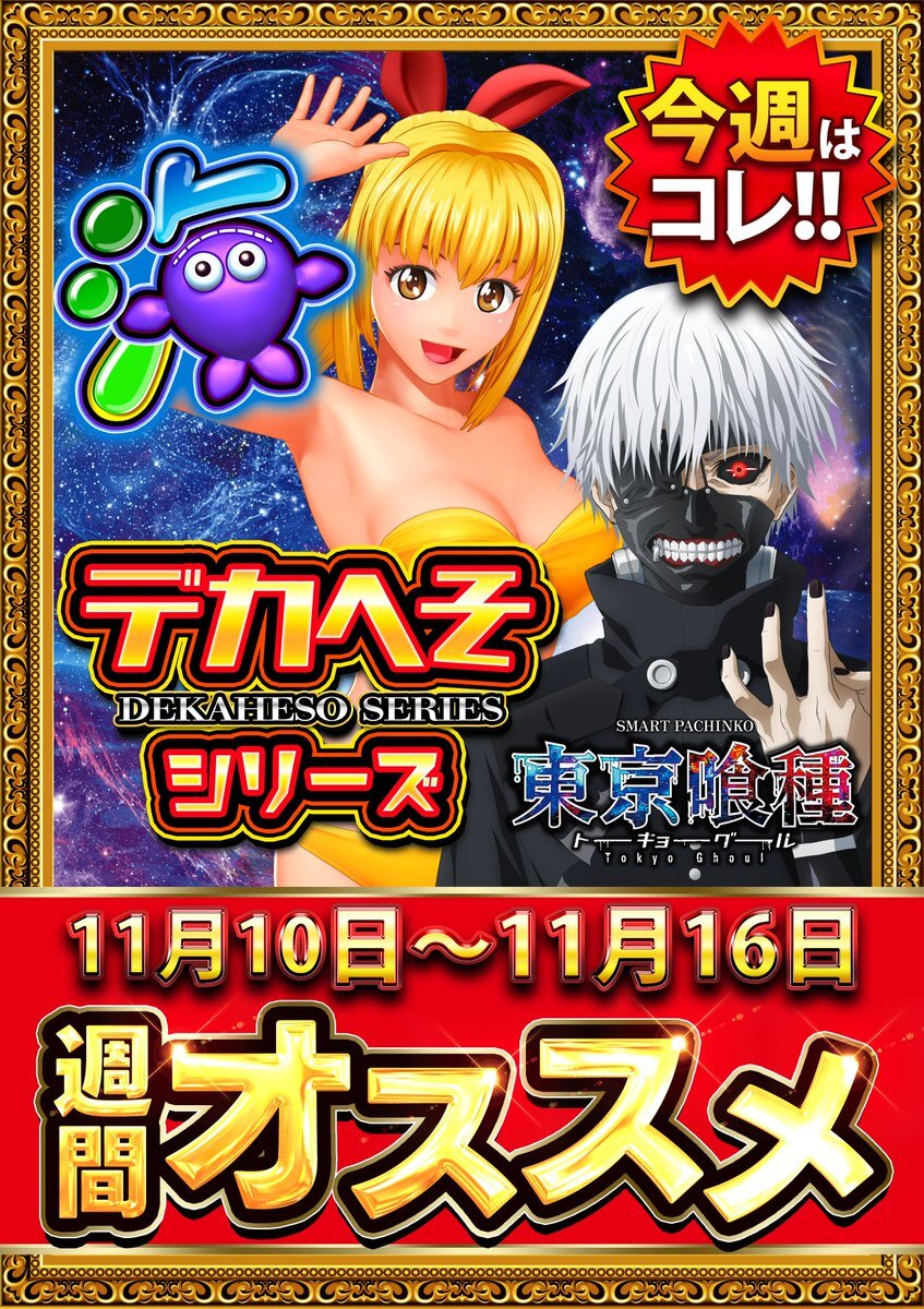 #クラブハウス本店 です🍁 ⚡本日10日(月) 10時オープン⚡ ⏰LINE抽選受付 9:00~ ⏰結果発表 9:45~ ☺️ご来店お待ちしております☺️ p-town.dmm.com/shops/fukuoka/… ⬆️⬆️⬆️店舗情報はコチラ⬆️⬆️⬆️ #本店PRIDE #L東京喰種 pic.x.com/2XD4KQciu4