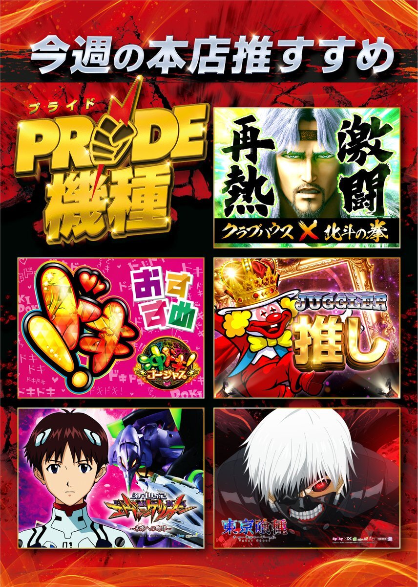 #クラブハウス本店 です🍁 ⚡本日12日(水) 10時オープン⚡ ⏰LINE抽選受付 9:00~ ⏰結果発表 9:45~ ☺️ご来店お待ちしております☺️ p-town.dmm.com/shops/fukuoka/… ⬆️⬆️⬆️店舗情報はコチラ⬆️⬆️⬆️ #本店PRIDE #L東京喰種 #エヴァ15 pic.x.com/lgXNEd4OFe
