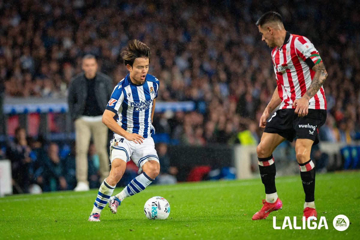 バスクダービーでの劇的な逆転弾をもう一度ご覧あれ👀 決めたのは今季トップチーム1年目ながらスビメンディの背番号4番を引き継いだ期待の若手、ゴロチャテギ💙🤍 #LALIGAEASPORTS pic.x.com/fedJ3HI6Cq