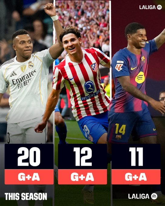 今季のゴール&アシスト数TOP3⚡️ 止まらない3人のスターたち💪 #LALIGAEASPORTS pic.x.com/WpX9AuqMPh