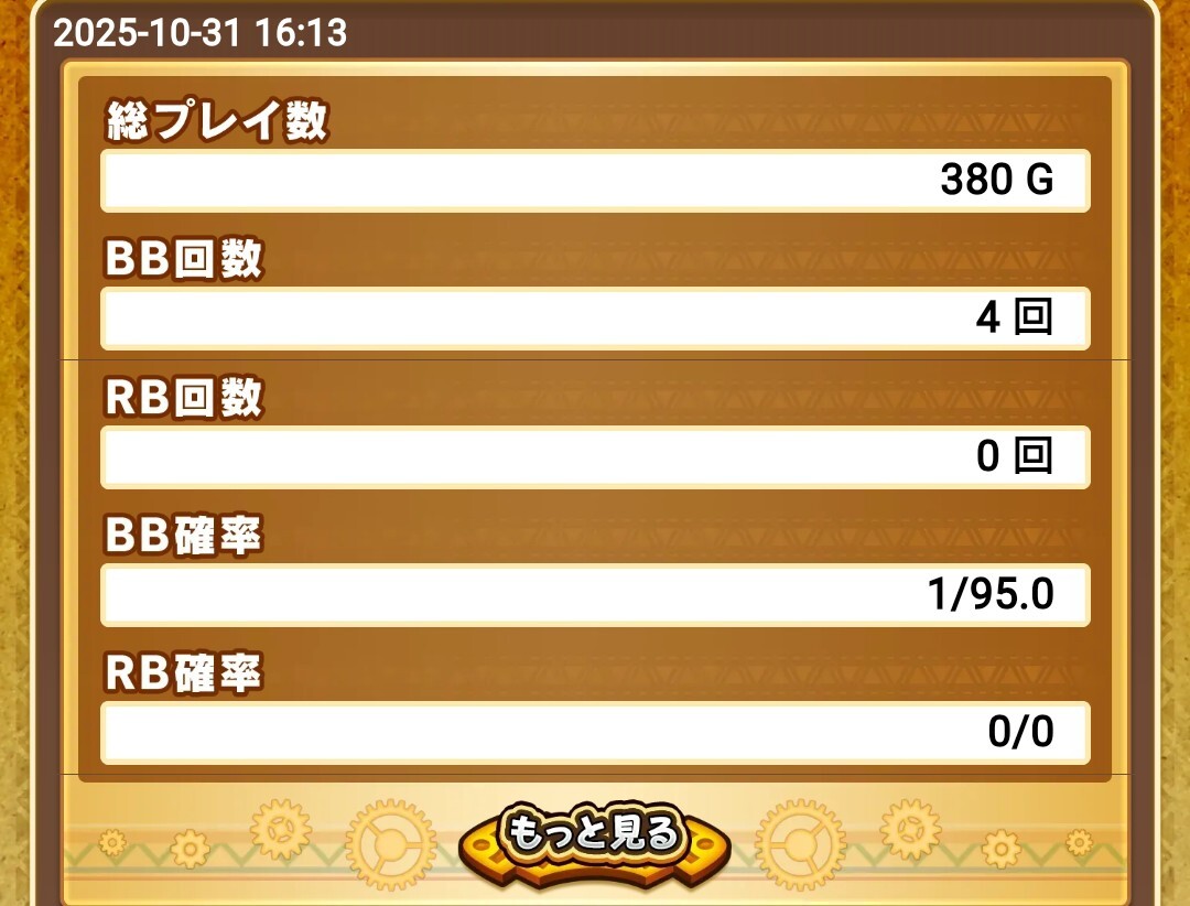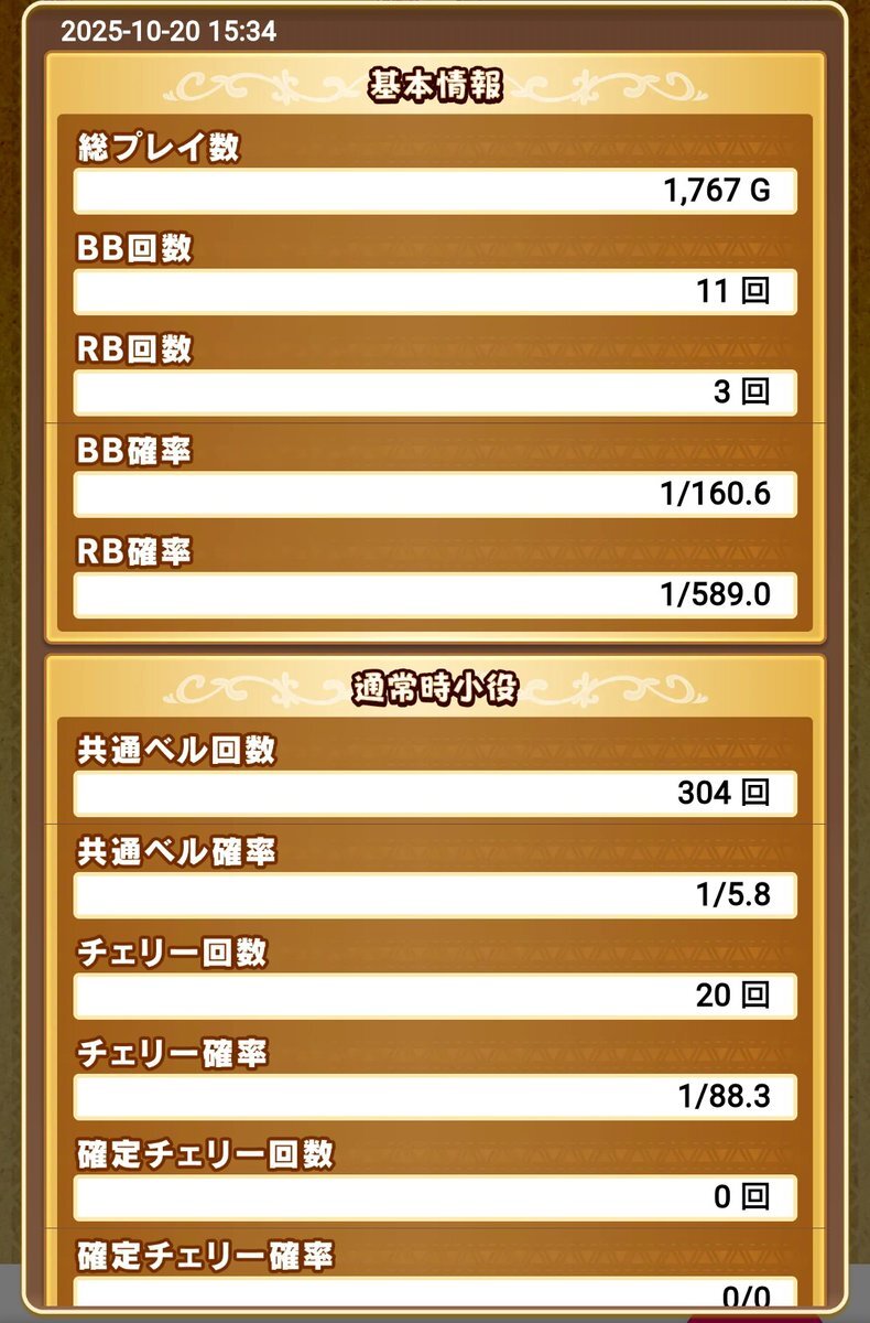 1000G回したところで 合算1/83とすこぶる良いけど BB10RB2っていうのがね… そして小役はすこぶる悪い🤣 今2300枚ほど持ってるけど 全呑まれも余裕であるからね あと1時間半くらいでヤメるし 設定は無くていいから この後もBBに偏ってちょーだい🙏 #LBクレアの秘宝伝