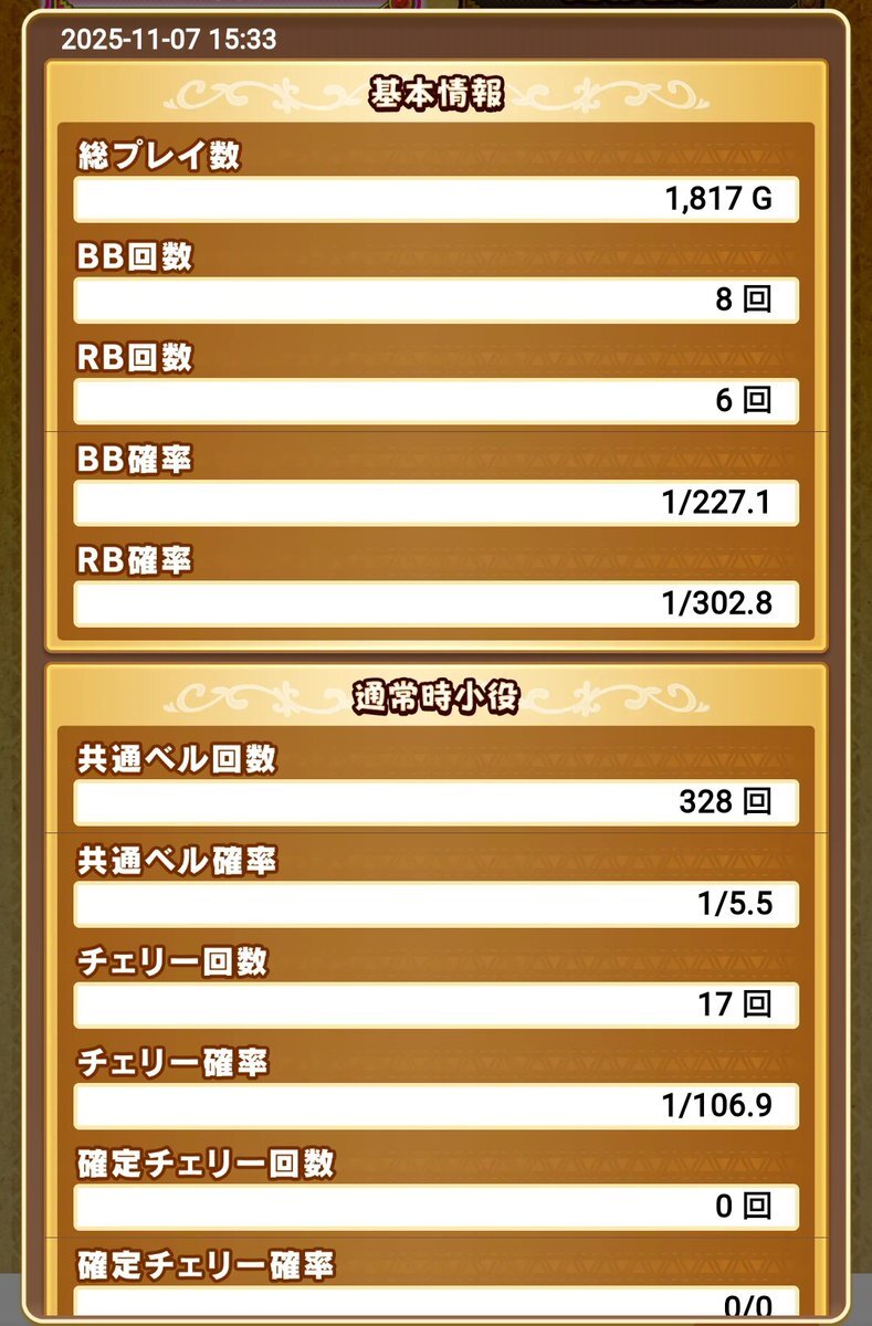 1000G回したところで 合算1/83とすこぶる良いけど BB10RB2っていうのがね… そして小役はすこぶる悪い🤣 今2300枚ほど持ってるけど 全呑まれも余裕であるからね あと1時間半くらいでヤメるし 設定は無くていいから この後もBBに偏ってちょーだい🙏 #LBクレアの秘宝伝 pic.x.com/tjyqs25ixR