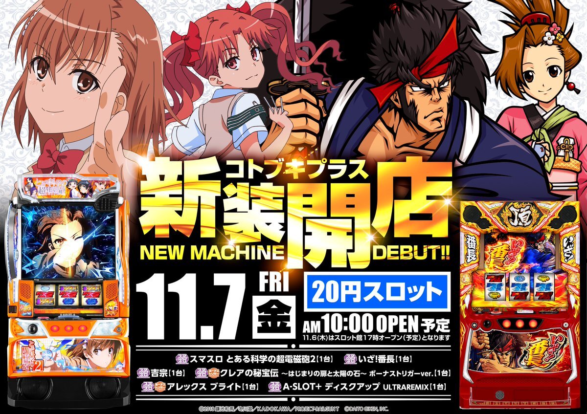 おはようございます☀ 1⃣1⃣月7⃣日(金) 本日全館元気に🔟時OPENです⏰ 今日は7⃣の付く日 #北斗 #ゴッドイーター 🌈スロット館 新装開店🎉 ▶ #LBアレックスブライト#LBクレアの秘宝伝#L吉宗#Lいざ番長#Lディスクアップウルトラミックス#Lとある科学の超電磁砲2#L鬼武者3 pic.x.com/Wx0uZ71XDs