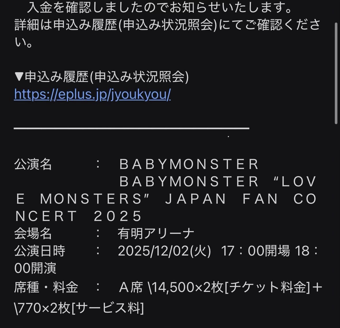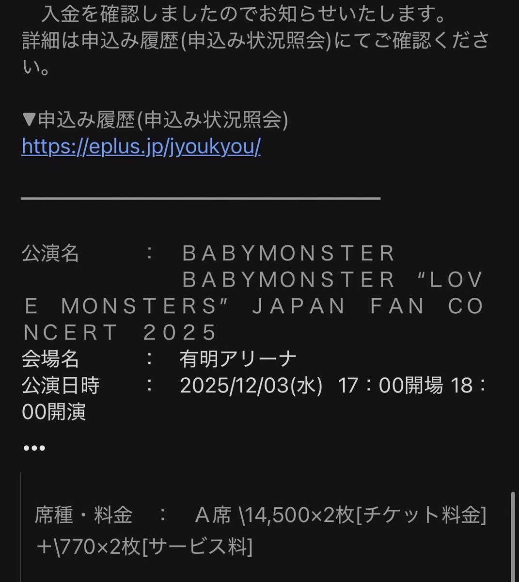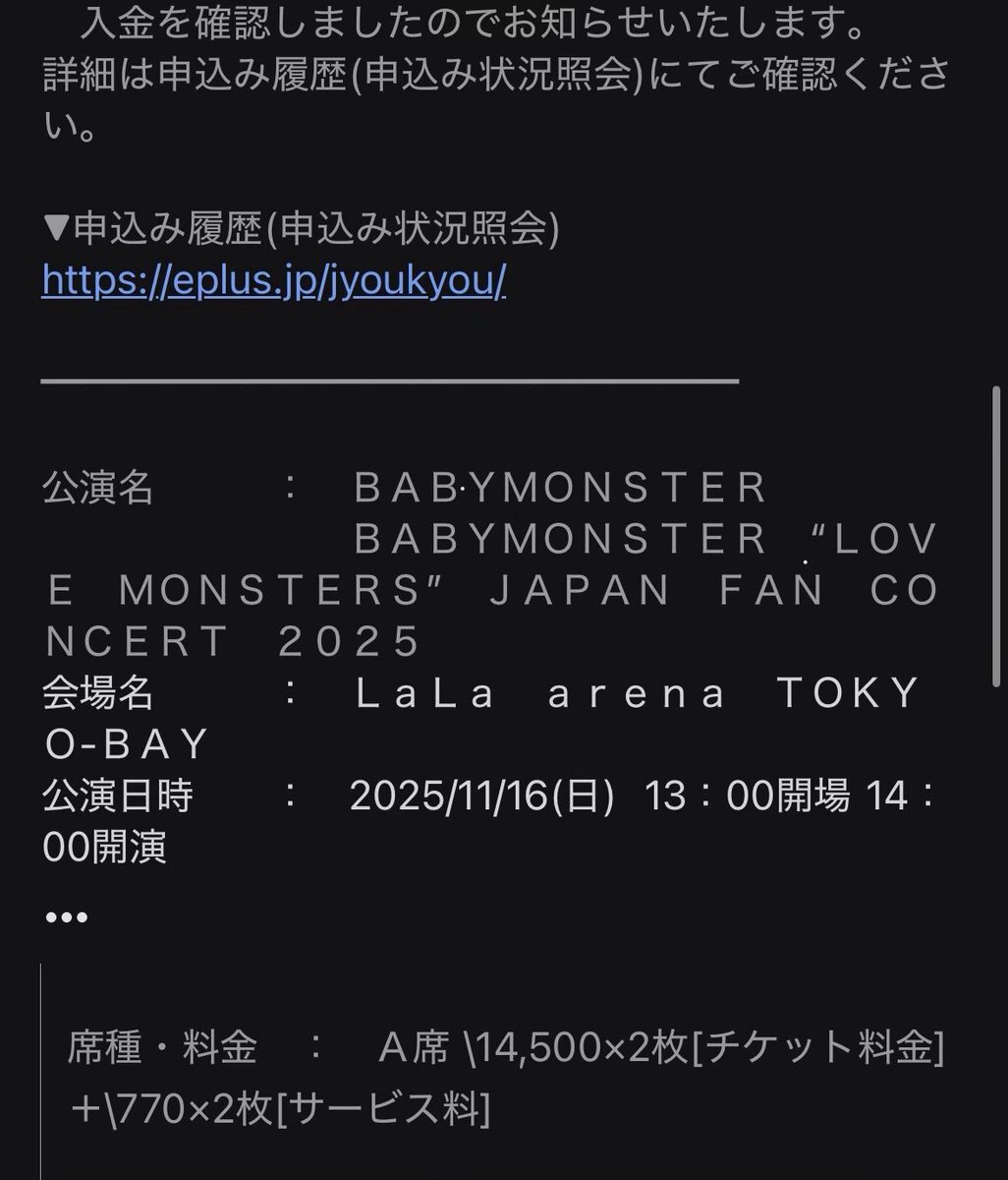 BABYMONSTER”LOVE MONSTERS” JAPAN FAN CONCERT 2025 [譲]11/16(日)千葉 A席2枚 [求]定価+手数料 PayPayにて事前支払いをお願いいたします🙏 #JAPAN_FANCONCERT #LOVE_MONSTERS #BABYMOSTER #ベイビーモンスター #YG #譲 #求 #MONSTIEZと繋がりたい