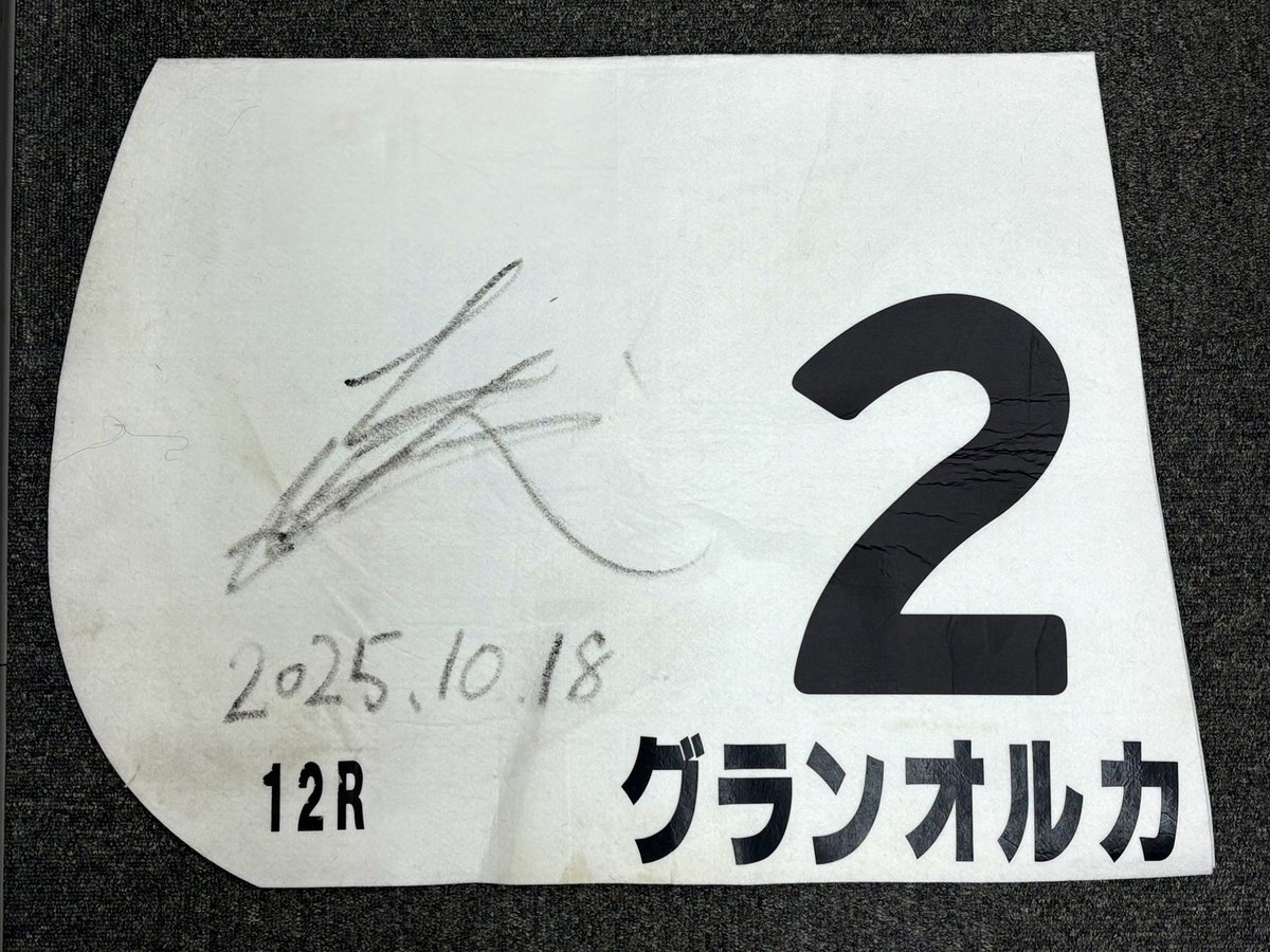 【グランオルカ】セ4 10/18東京12R 3歳以上2勝クラス(13着)、佐々木大輔騎手サイン入りゼッケンをプレゼントします!! <応募方法> (1)アカウントをフォロー (2)本投稿をリポスト 〆切は2025年11月21日23:59 ※当選者にはDMでご連絡します🎊 #LiamsMap #Layla pic.x.com/dk2CpAIW6S