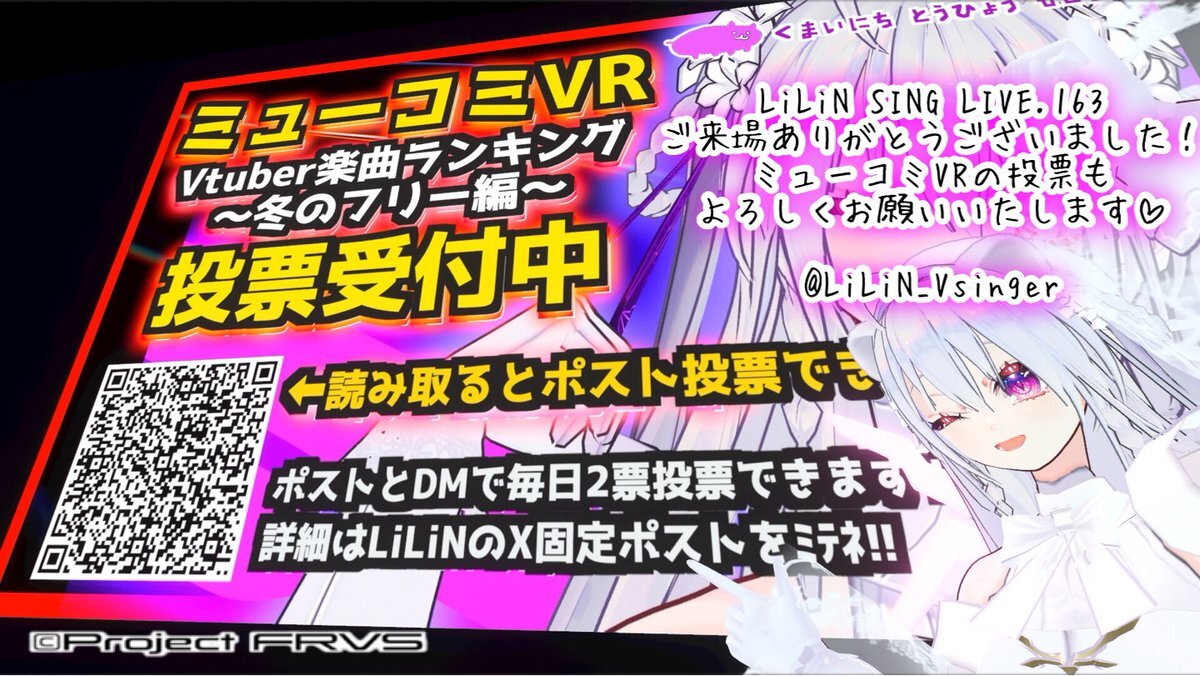 // 🗣️本日の #ProjectFRVS 🌇 \\ ___ 11/15(土) 17:00~ 🐹【LiLiN SING LIVE.163】 ▶︎ cluster.mu/e/88e6e129-6bb… ___ 歌に命をかけるVsinger、LiLiNの歌をお聴きください🎧 (ご参加には #cluster アプリのDL(無料)が必要です) #LiLiNclusterLIVE #cluster x.com/lilin_vsinger/…