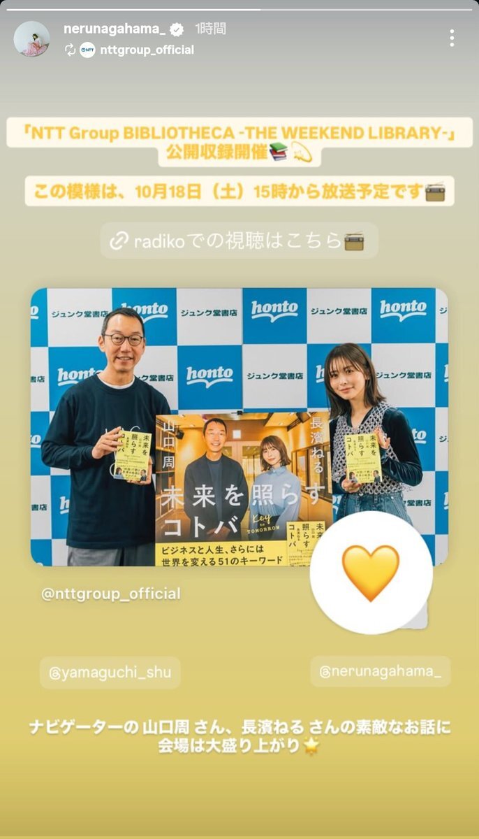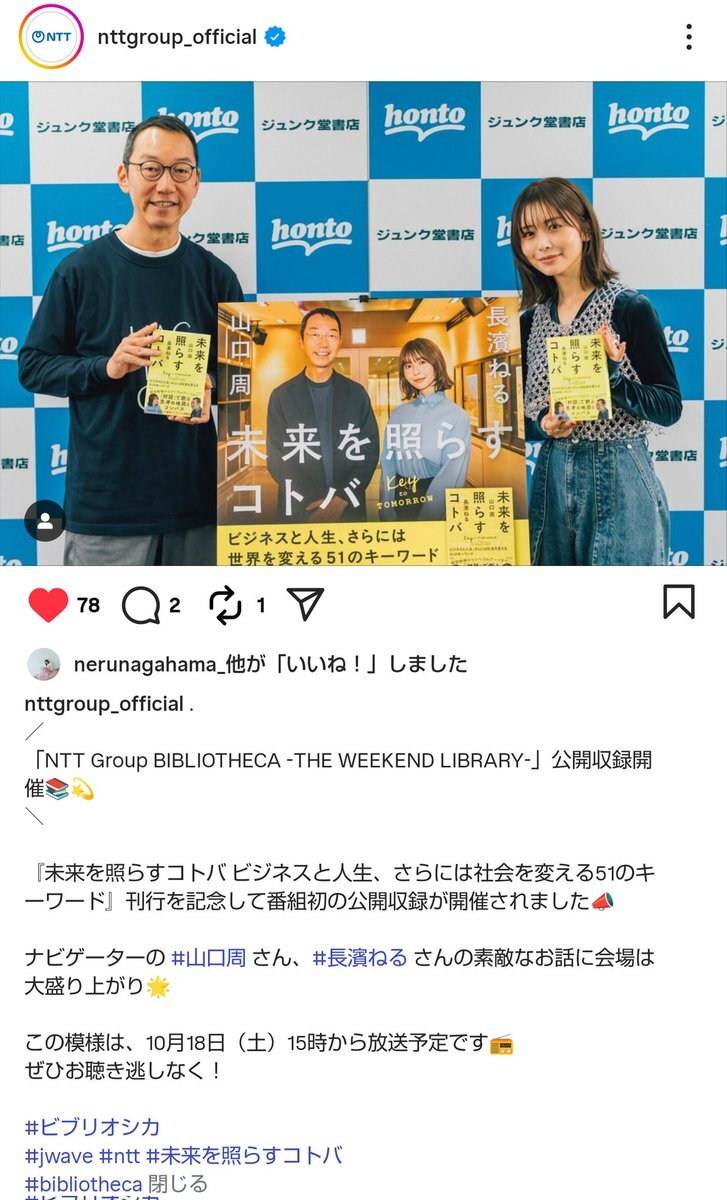 18日にもう放送されるとは!! 編集早いな。◕‿◕。😁 #未来を照らすコトバ #未来を照らすコトバ_ビジネスと人生さらには社会を変える51のキーワード #bibliotheca #ビブリオシカ #山口周 #長濱ねる #図書館司書 #SDGs #jwave #radiko #NTT #library #books pic.x.com/Ig5a6h8dFj