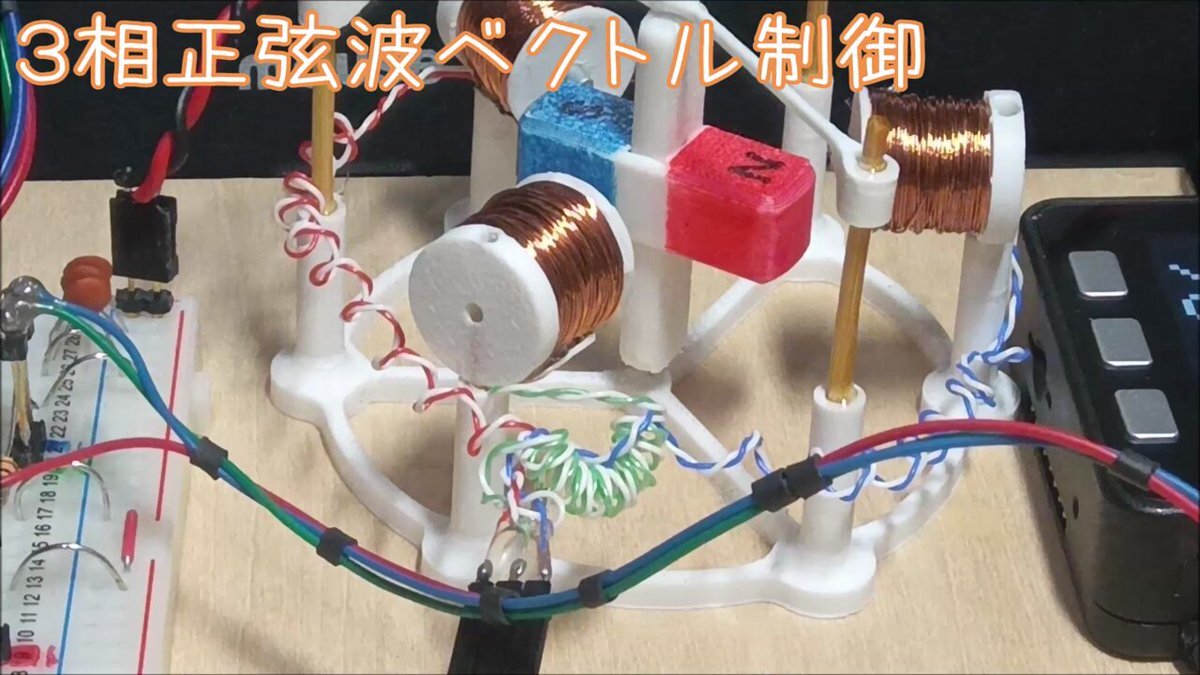大学の講義でやったこと... その9 #スタックチャン の #ベクトル制御♪ #3相正弦波 ベクトル制御 滑らかに磁界の方向が変化するので カクカクせずに回ります♪ #手回しインバータ での #矩形波制御 例 x.com/shinichi_nino/… #M5Stack