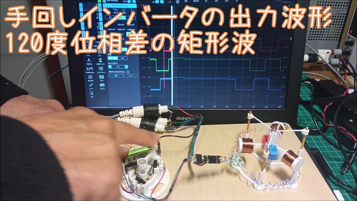 名古屋大学 講義でやったこと... #手回し3相インバータ で #ベクトル制御♪ 120位相差の電圧出力のモニタ カクカクした動きも 周波数が上がると滑らかになっていきます。 実車HV車でも高回転で使われる制御です PWM変調 → 過変調 → 矩形波 #ブラシレス130モータ 例 x.com/shinichi_nino/…