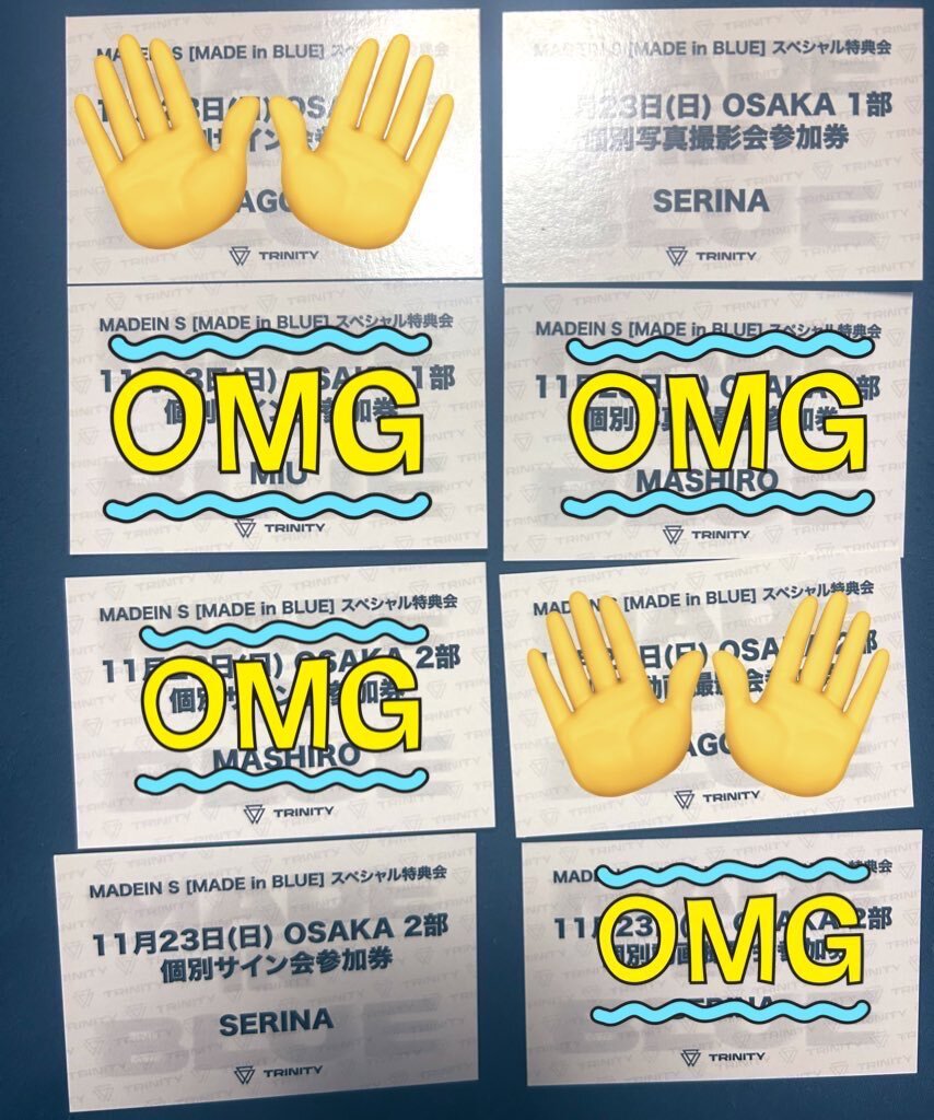 セリナサイン会〆 MADEIN_S MADE in BLUE 11/23 OSAKA 個別メンバー(個別写真撮影会)交換 【譲】セリナ 【求】ナゴミ 当日手渡しにて交換希望です! 異種でも検討します!気軽にお声がけ下さい! #MADEIN_S #MADEIN_S交換 #MADEIN交換 pic.x.com/tAKsZOnkwS