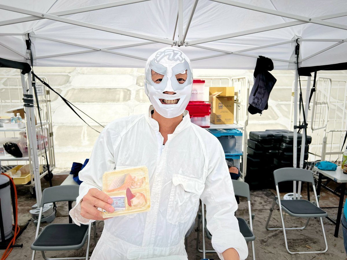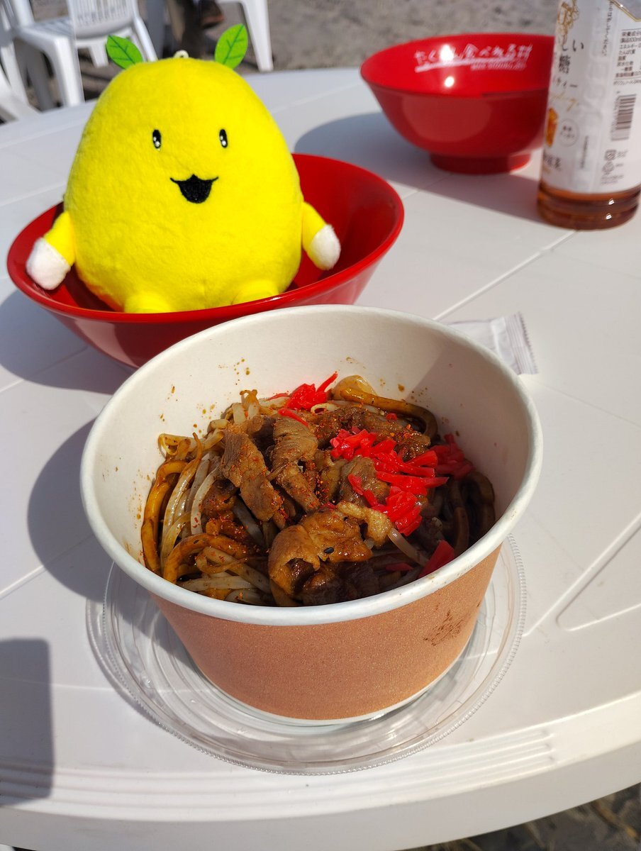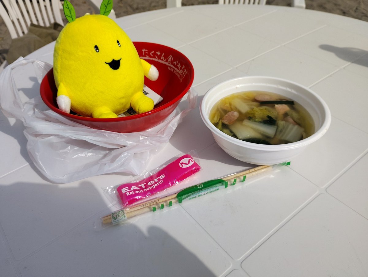 #浪江浜まつり 1番乗りモコー 朝からゴミ拾いして、 無料の #ちゃんこ  食べるモコー  #MAX鈴木 のたくさん食べられる丼ぶりいい座り心地モコー 無料の浜焼き北寄貝等も 食べるモコー  #浪江焼きそば も 食べるモコー #もえあず #ひびめし #モコ太郎 #請戸もの 大食いに、ライブに豪華モコー pic.x.com/L107Pd8dby