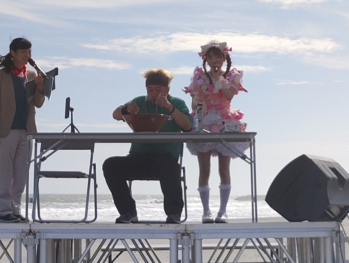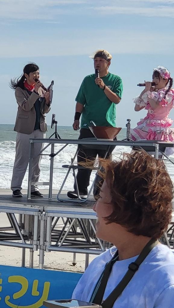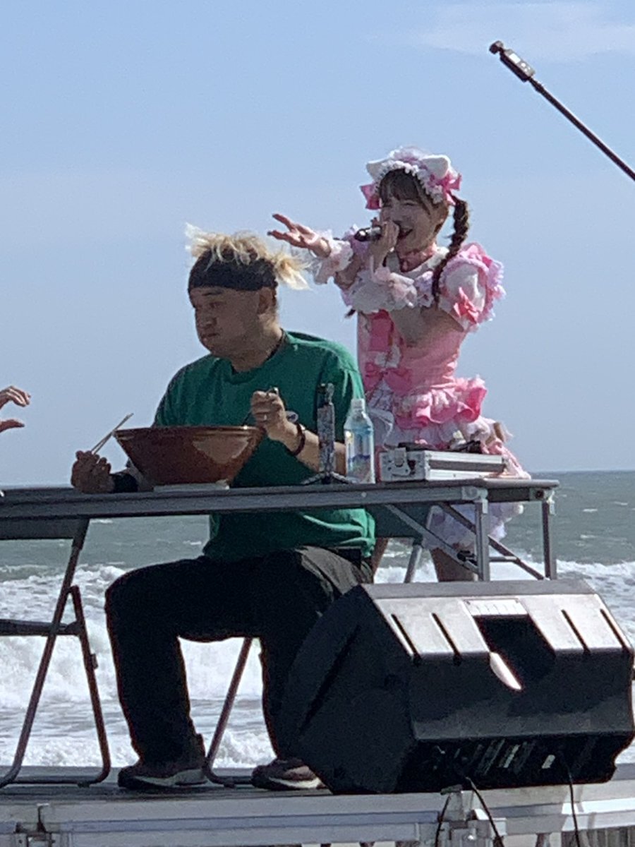今回、ちゃんこの大食いにチャレンジしていたのは、MAX鈴木さんでした。 こちらは、大食いチャレンジ中MAX鈴木さんの後ろで応援ソングを歌うもえあずの図。 #なみえ浜まつり #もえのあずき #MAX鈴木 pic.x.com/xUtTHEEMlL
