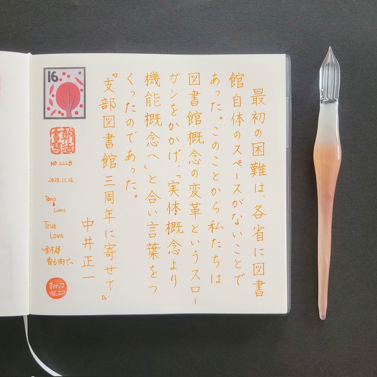#朝活書写 #朝活書写_2228 お題をありがとうございます。 No.2228です。 #文具のミドリ #MDノートスクエア #ミドリサポーター #ガラス工房aun #TonoandLims #まどさん日付けシート (@DzPh0QvtZBPYAbI) #おくちゃんさん #木木屋 (@kikiyastamp) pic.x.com/LkA1PGBlWx x.com/asakatsu_shosh…