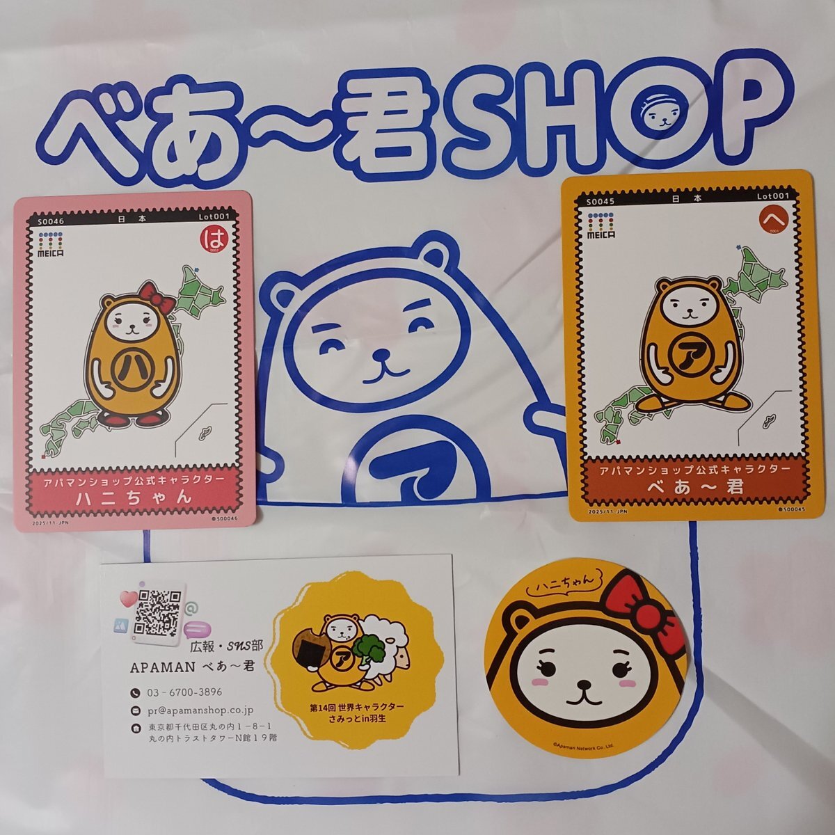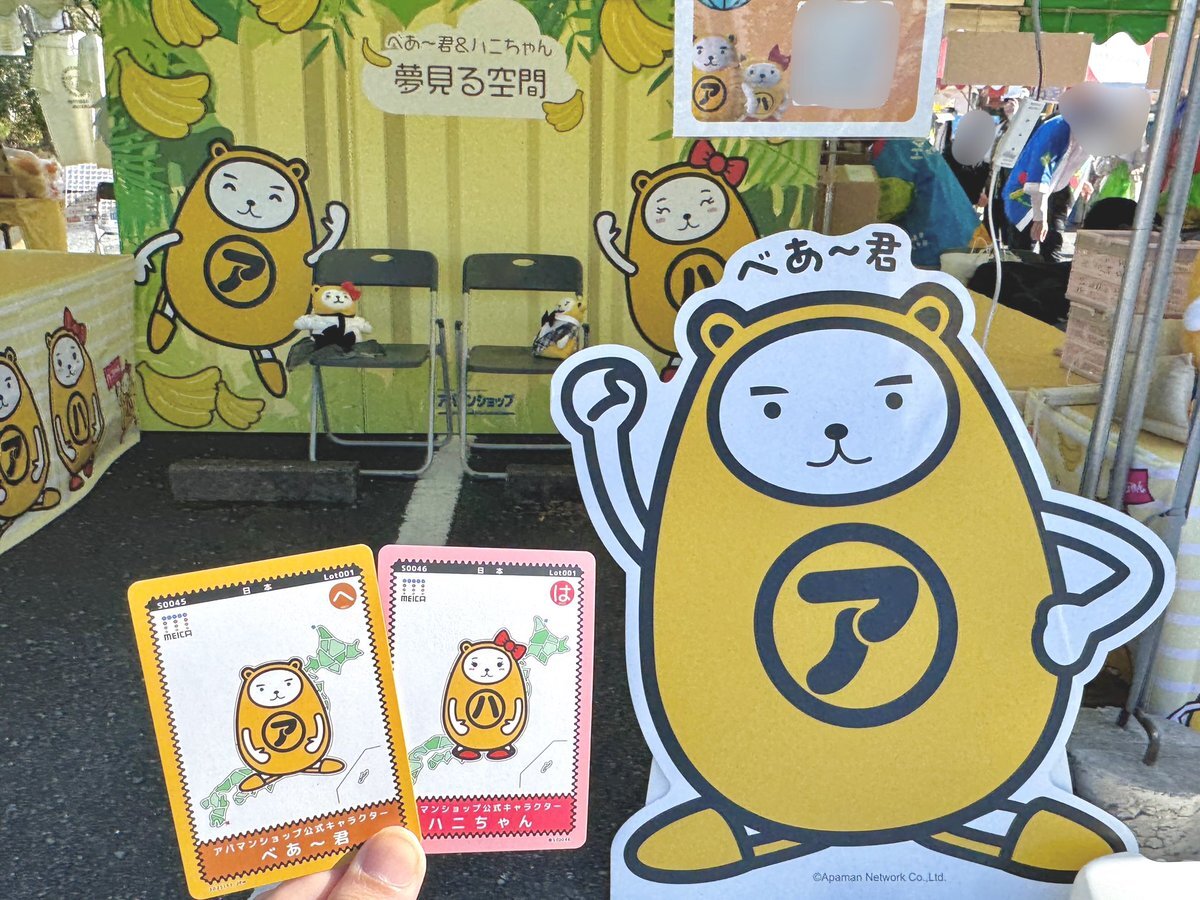 まずはアパマンショップの べあ~君&ハニちゃんブースへ! #MEICAカード は SNSフォローで1枚、それ以上欲しい方は購入でもGETできます! 一緒にぬいぐるみも購入しましたw pic.x.com/EgnW2koEoc