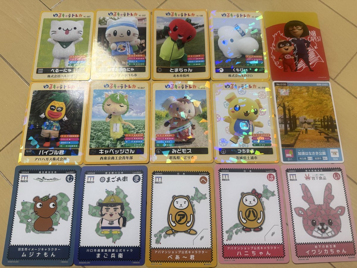 世界キャラクターさみっとin羽生2025の会場でいただいたゆるキャラトレカ、MEICAカード、ゆるキャラ名刺などです。 #ゆるキャラトレカ #MEICAカード pic.x.com/BVXi7ibwUo