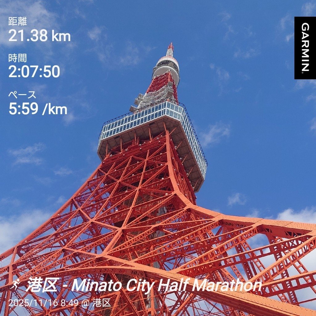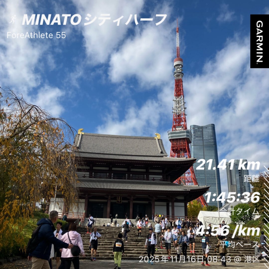 #MINATOシティハーフ めっちゃ折り返し多くて、坂もあって、コースはごちゃごちゃしてた感じたけど、なんとか完走 途中心折れそうになったけど、いいペースの方を見つけてその方についてって、自己ベスト更新! ゴールが東京タワーってテンション上がった〜 本日は程よい筋肉痛です笑 pic.x.com/cg9InLRexI