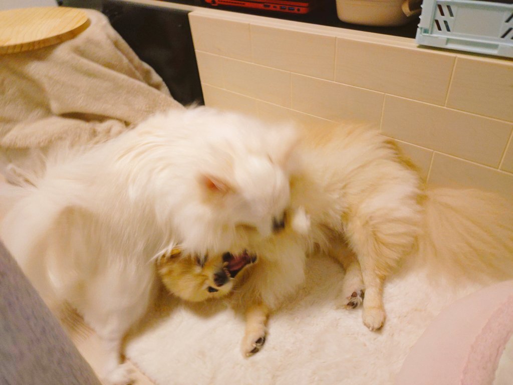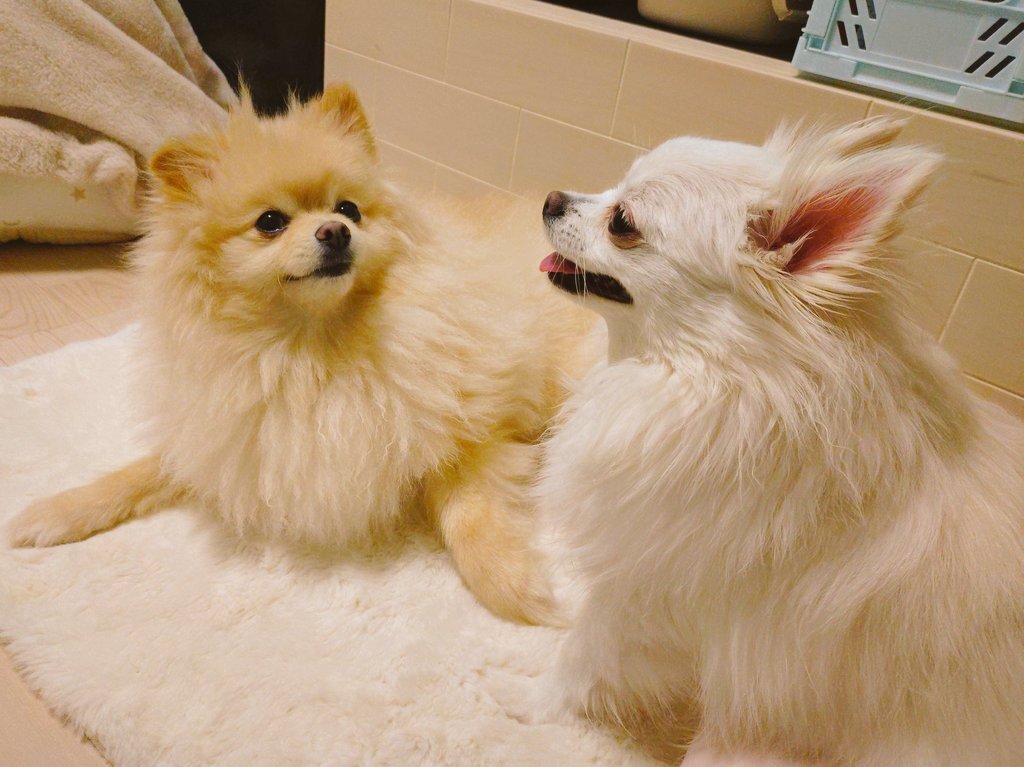 散々ワンプロして暴れた後の ケンカ?僕達そんなことしてません 仲良くしてましたーな顔 #ポメラニアン #ポメチワ #mix犬 #犬のいる暮らし #ワンプロ後 pic.x.com/HZDEnVwab2