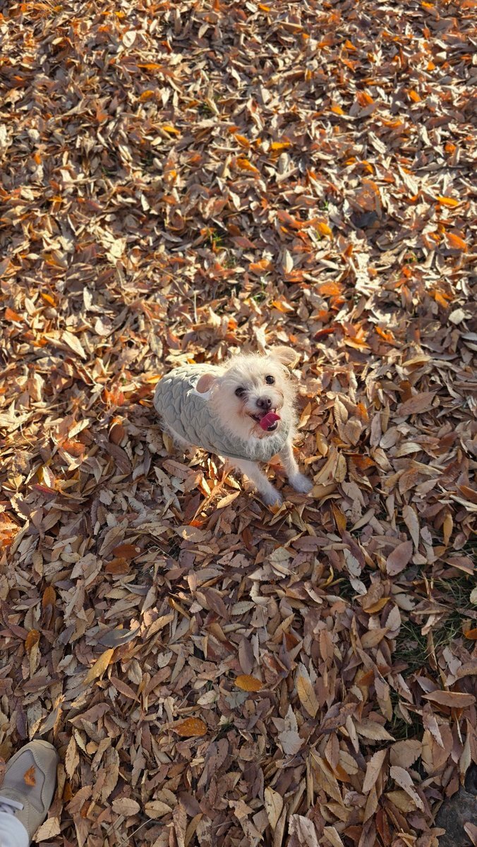おはようまるさん。 落ち葉といぬ。 かわいいいいい #ミックス犬 #MIX犬 #MIXdog #紅葉 pic.x.com/SG1BaF0y8W