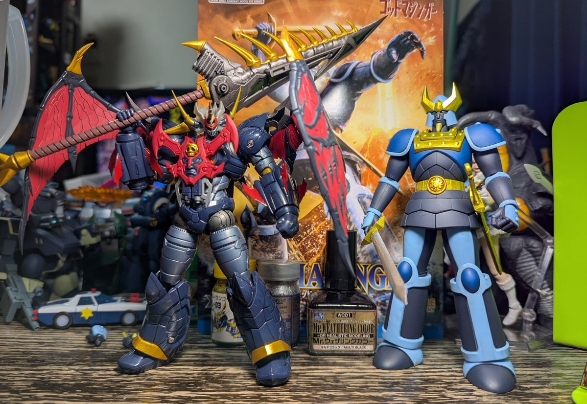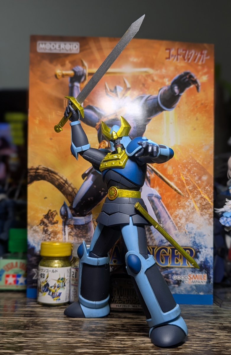MODEROIDゴッドマジンガー完成 本体つや消し、金色はエルドランゴールドで筆塗りして光沢トップコート 1984年のリアルロボ真っ盛りの時代に、このストロングスタイルなデザインのおかげでサクッと組める ポージングの自由度は高いけど関節が硬いので破損注意 #MODEROID pic.x.com/wBUwqOfqrX