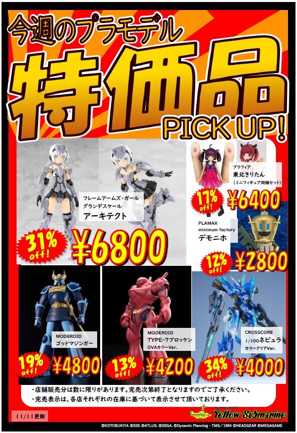 こんにちは😃 本日、店舗は17:00まで開けております。 久々に入荷がありました。 #moderoid ・エヴァ初号機 ・ゴライオン ・スーパーX #海外プラモ ・TRA ACTION TROOPERシリーズ stag(スタッグ) 白&黒 #モデロイド は全て再販です。 ゴライオンとスーパーXは 初回入荷時に即売り切れたので pic.x.com/nwDYlEBSL5