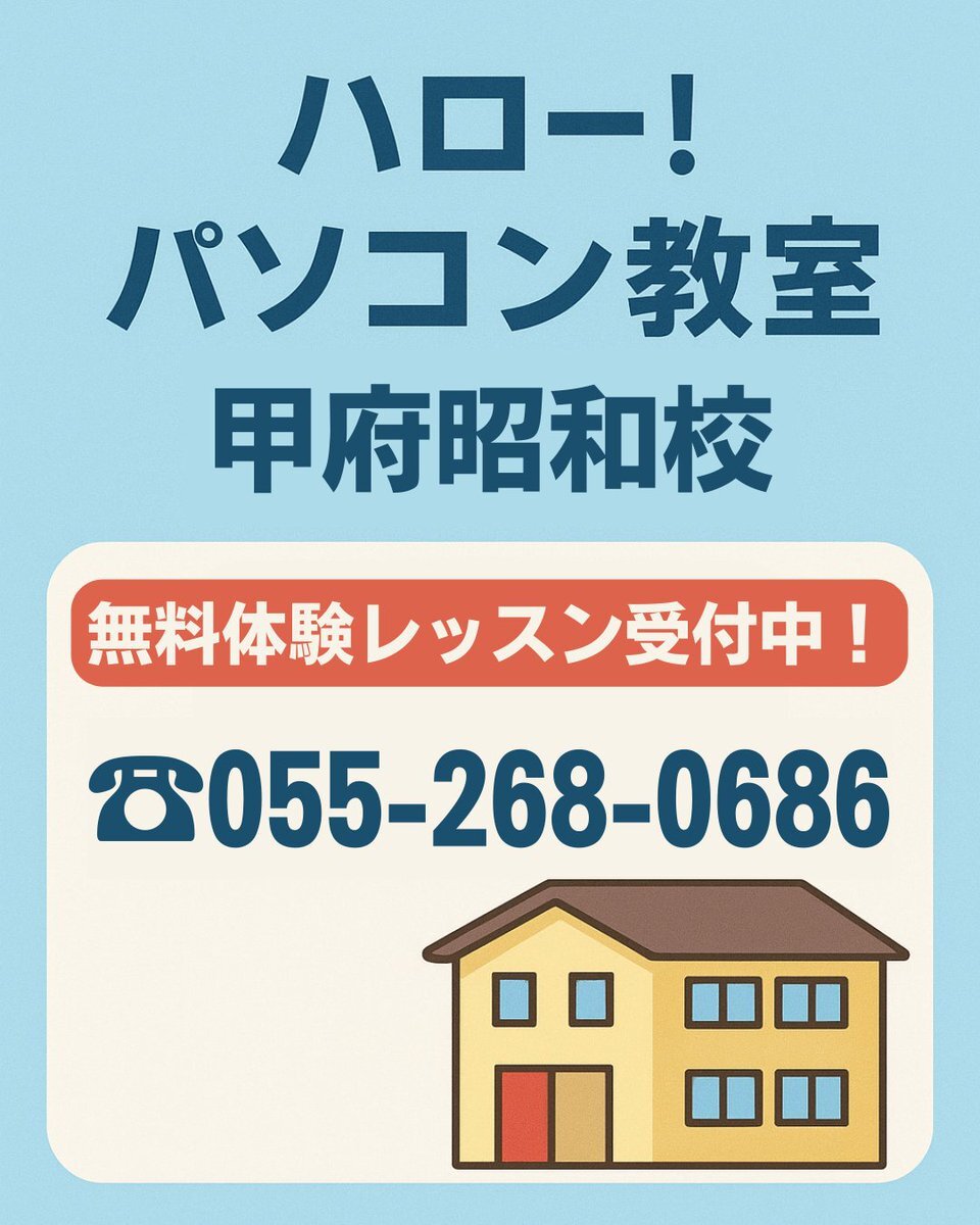 🎉残り4日🎉 #甲府 でパソコン始めるなら今! 入会金0円+特別レッスン1,100円✨ 初心者も資格取得も安心💻 👉無料体験受付中! koufusyouwa-pc.net #パソコン初心者 #MOS資格 #パソコン教室 pic.x.com/284A75O1X3