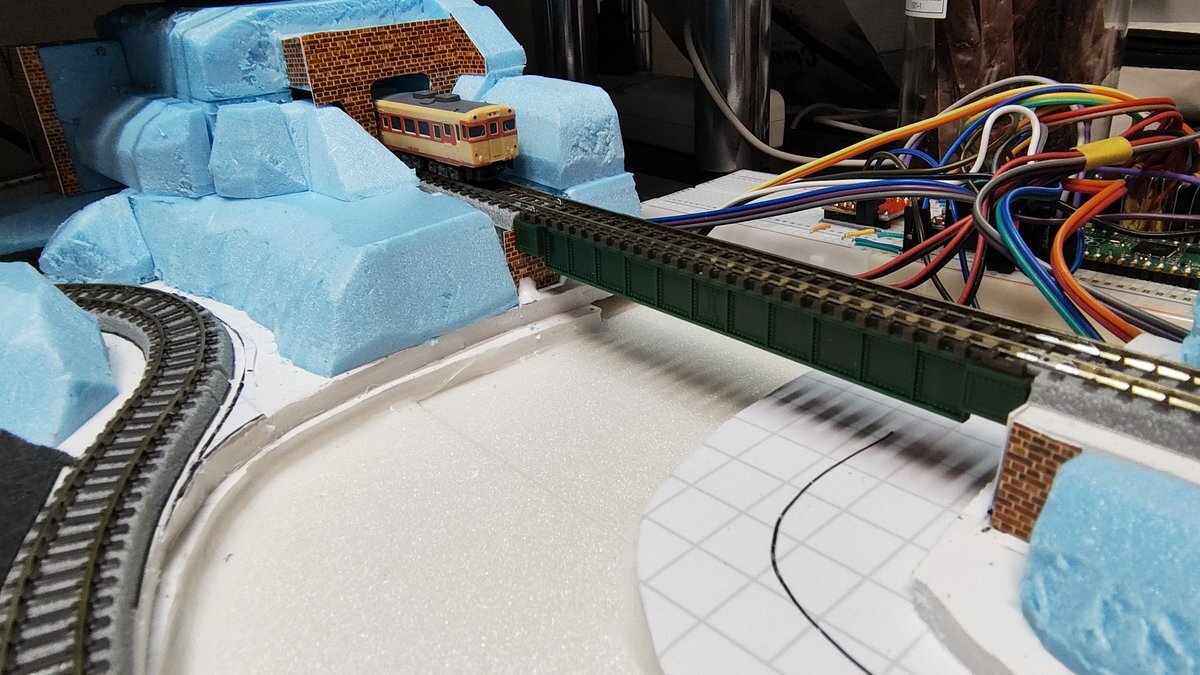 時間でダイヤを基に列車制御できた ただカウンタだからTimerでやりたい 同じ要領で次はポイントも時間制御だ #MicroPython