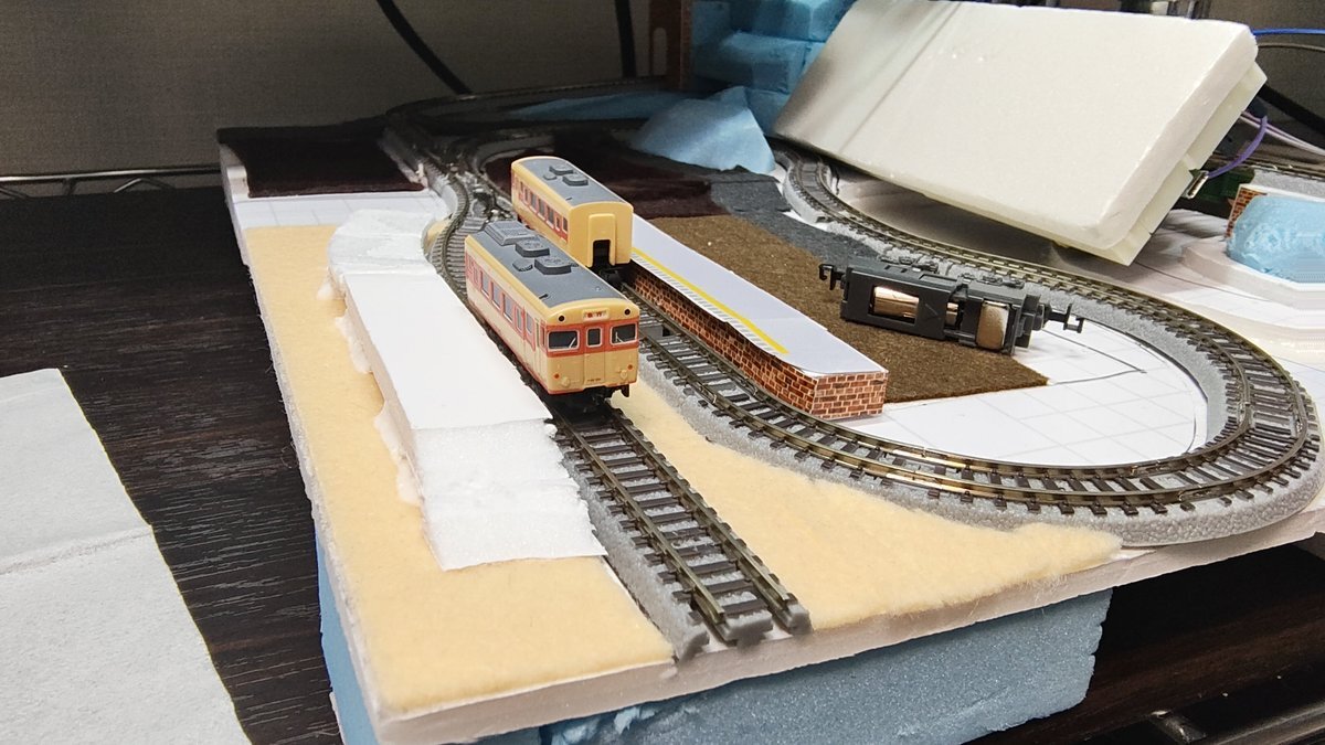 2つ目のホーム作成中 時間無いからとりあえず土台だけ 駅の構造物って結構デカイかも まだ支線駅も控えてる #Zゲージ #MicroPython #ロクハン pic.x.com/EIKLg91xX7