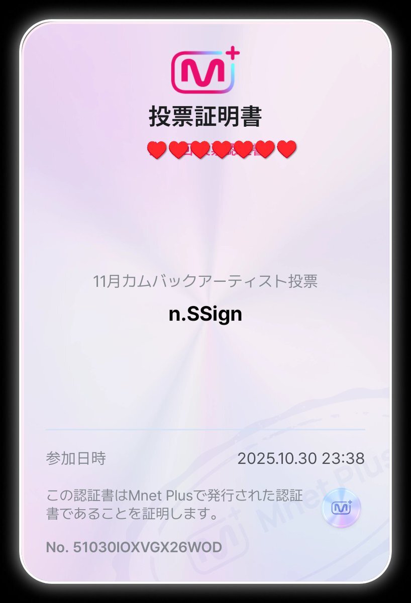 11月のカムバック #nSSign に投票🗳️✅🙆♀️ #MnetPlus #Comebackvote #Comebackvoting mnetplus.onelink.me/TRa8/0mxl223z?…