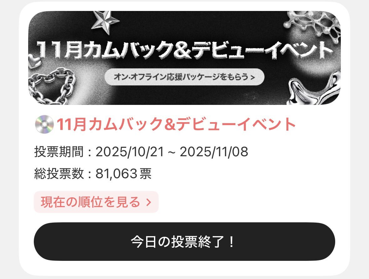 ファイヤー🔥 🔥 🔥ก(ー̀ωー́ก) 10/31 🗳 11月カムバックアーティスト❤️🤍 #MnetPlus #Comebackvote #Comebackvoting pic.x.com/XRP22y5SZn
