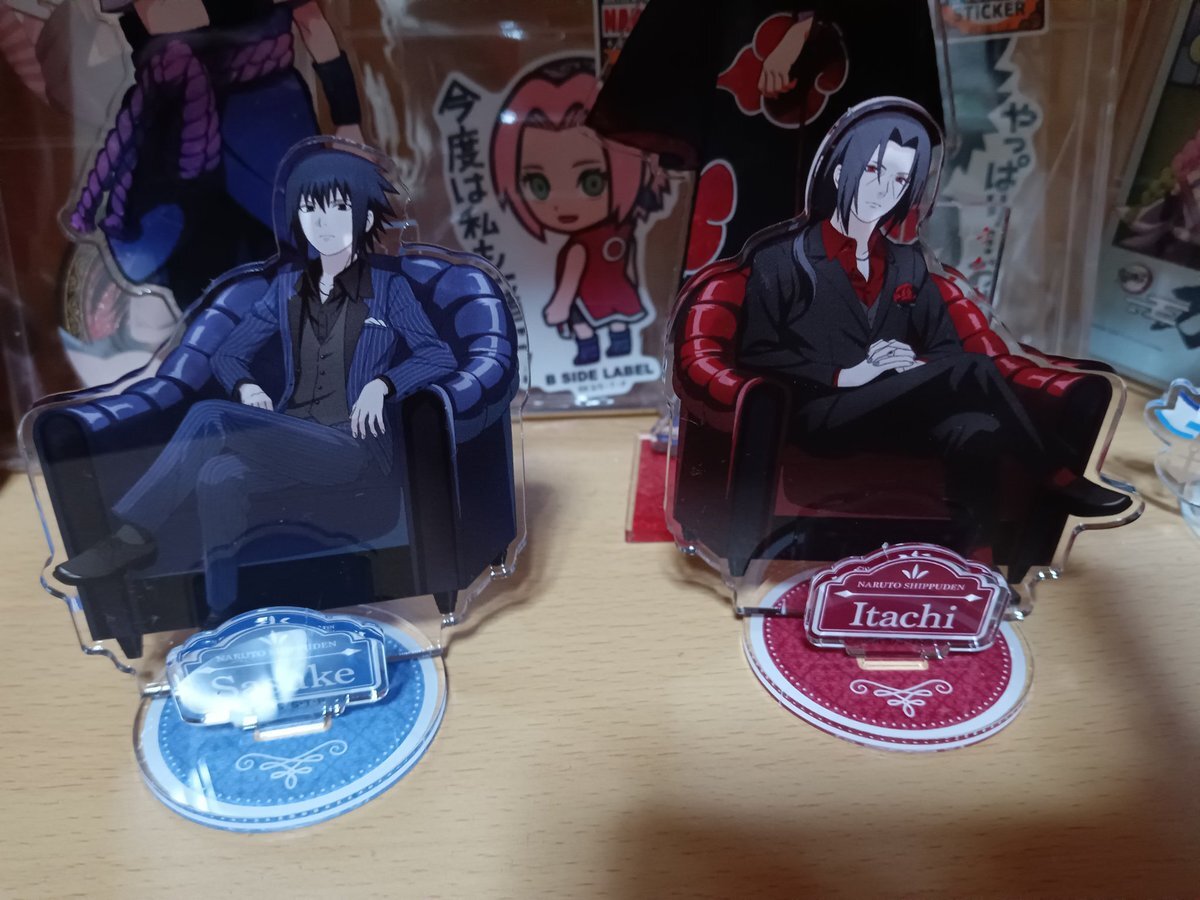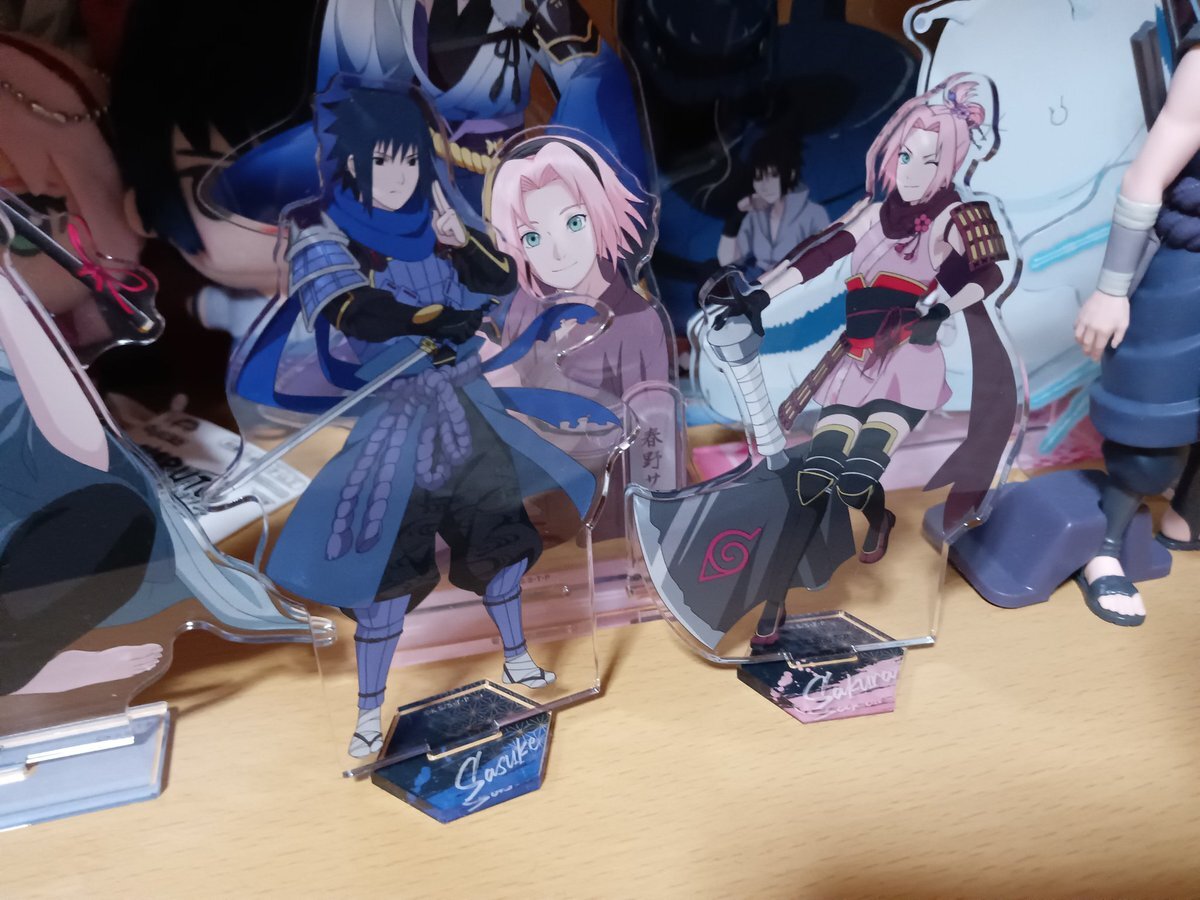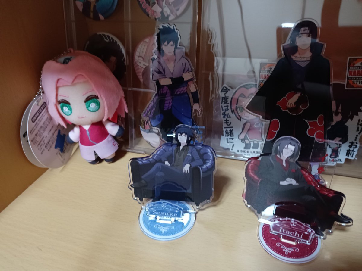 今のサスサク🍅🌸コーナー❣️、うちは兄弟アクスタ🍅🍡‼️サスケのフィギュアが増えた!クリアファイル! #NARUTO疾風伝 pic.x.com/ecMM1M0ozs