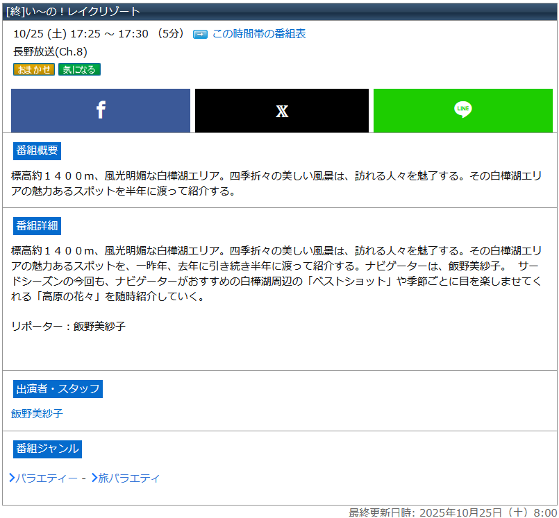2025/10/25 (土) 17:25 ~ 17:30 #NBS長野放送 (Ch.8) い~の!レイクリゾート 3rdシーズン 最終回 nbs-tv.co.jp/program/specia… ナビゲーター #飯野美紗子 #い〜のレイクリゾート #いのリゾ youtube.com/playlist?list=… pic.x.com/YqDUIw2WdE