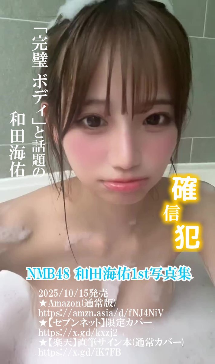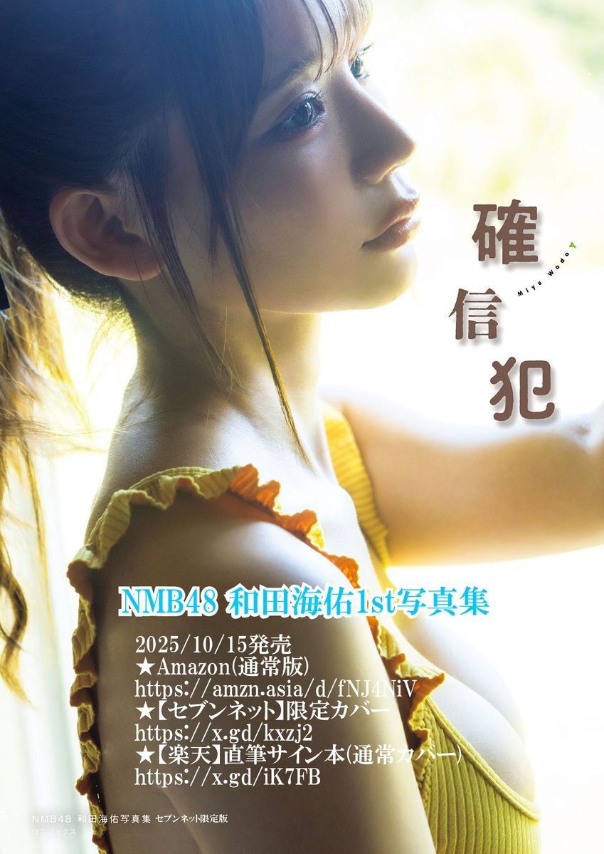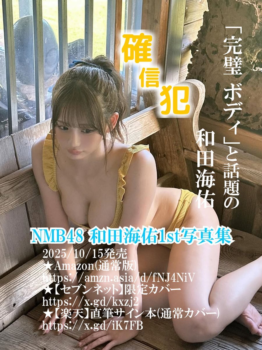 「完璧 ボディ」と話題の #和田海佑 さん #NMB48和田海佑写真集「確信犯」2025/10/15発売 Amazon(通常版) amzn.asia/d/fNJ4NiV 【セブンネット】限定カバー x.gd/kxzj2 【楽天】直筆サイン本(通常カバー) x.gd/iK7FB news.nmb48.com/etc/20250914/1… linkbio.co/7093018k1OxuX pic.x.com/lOYiltAvO1