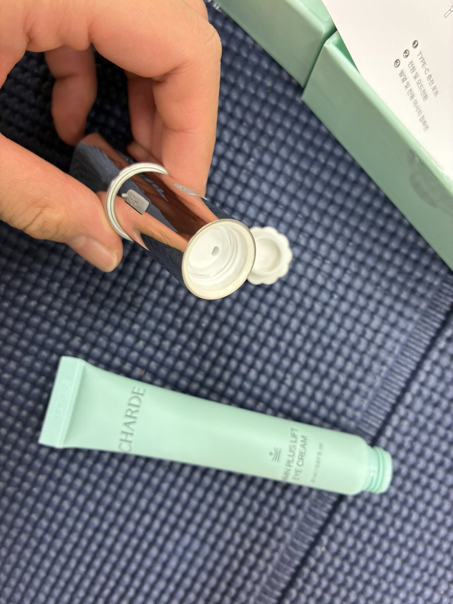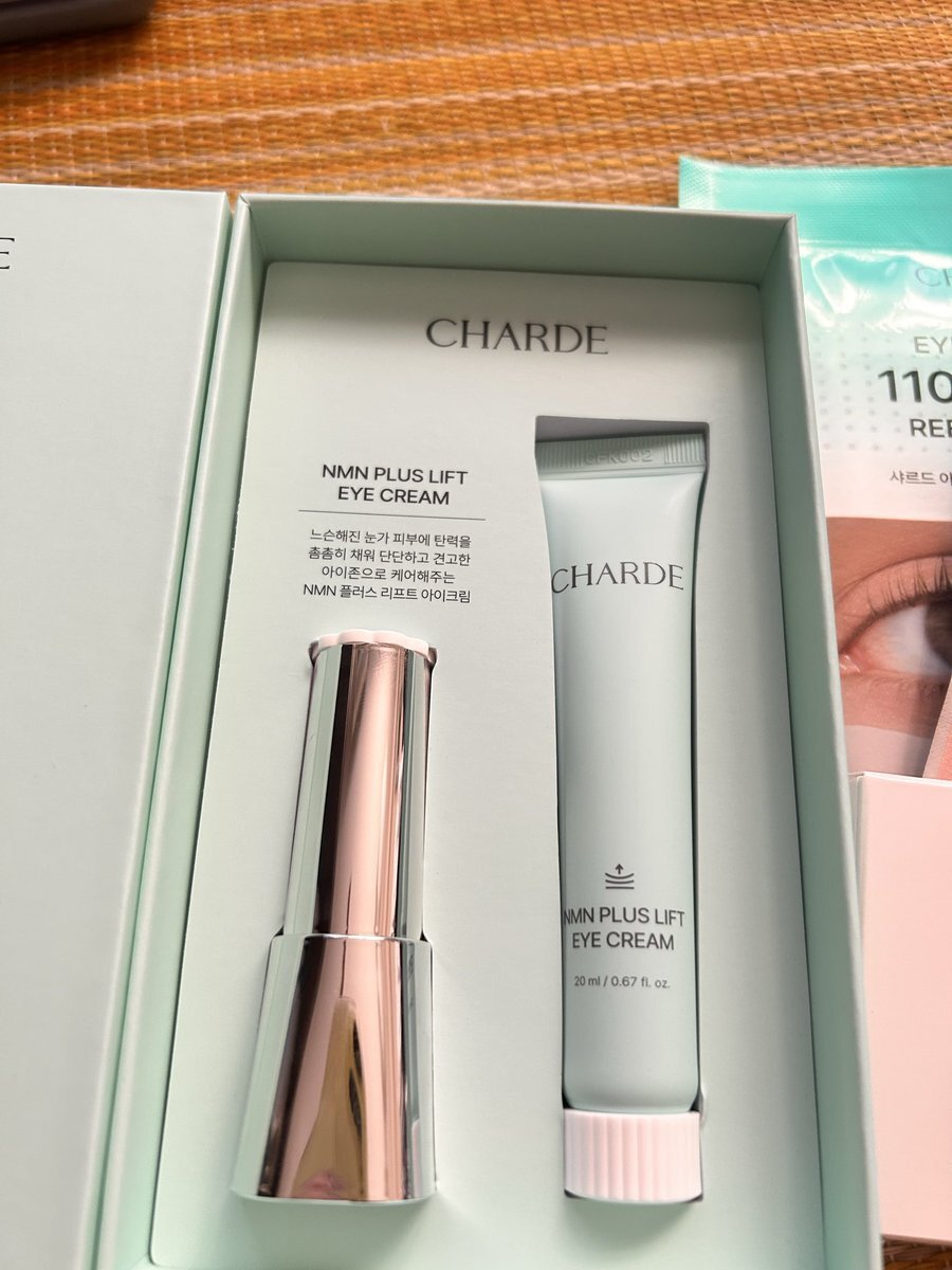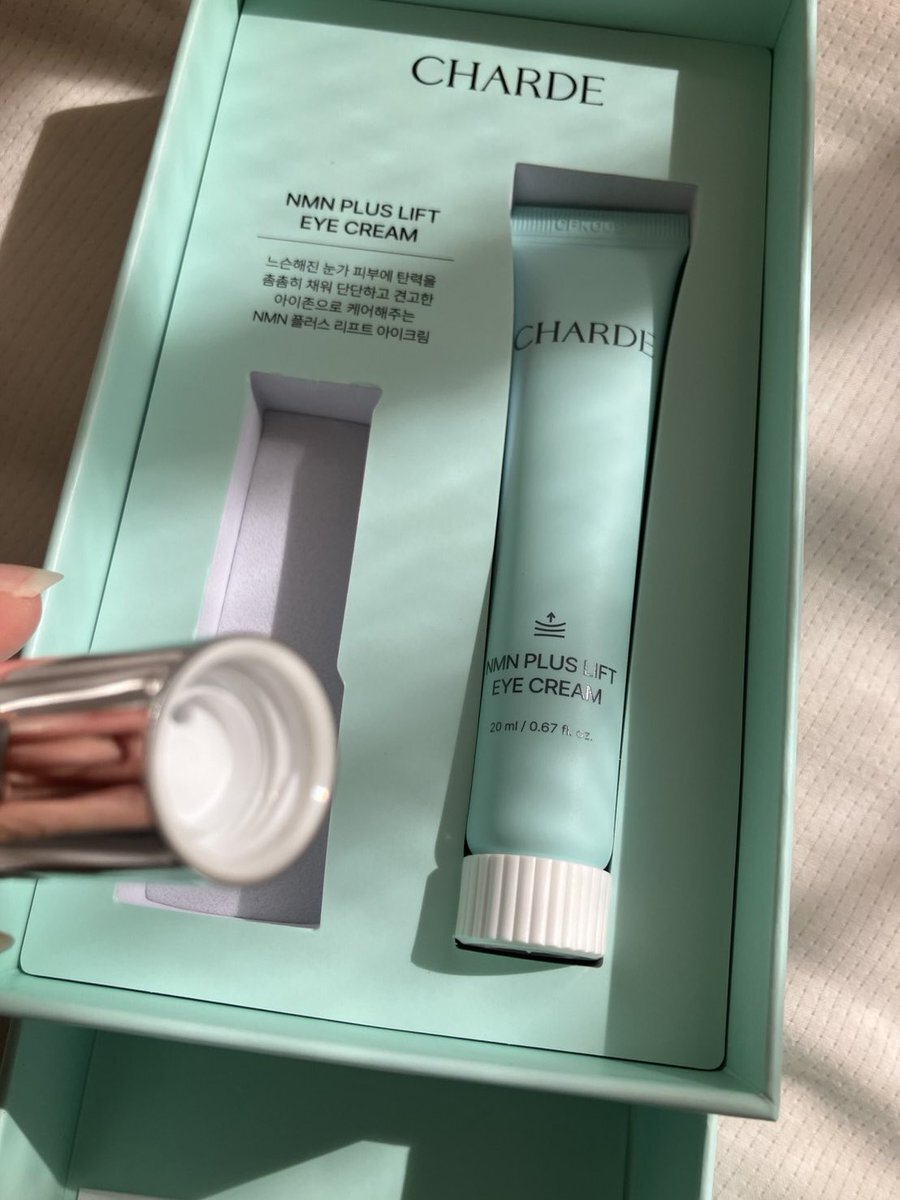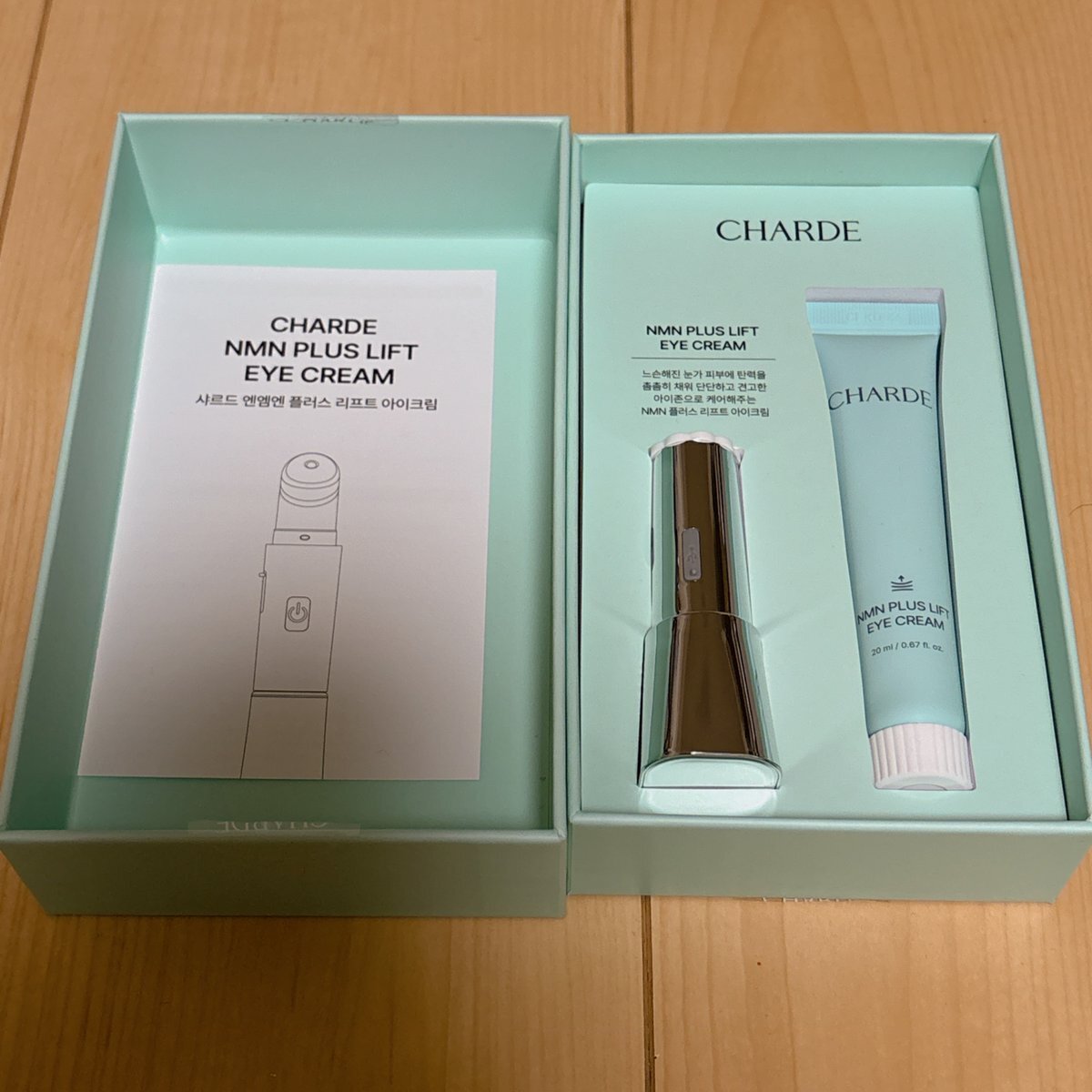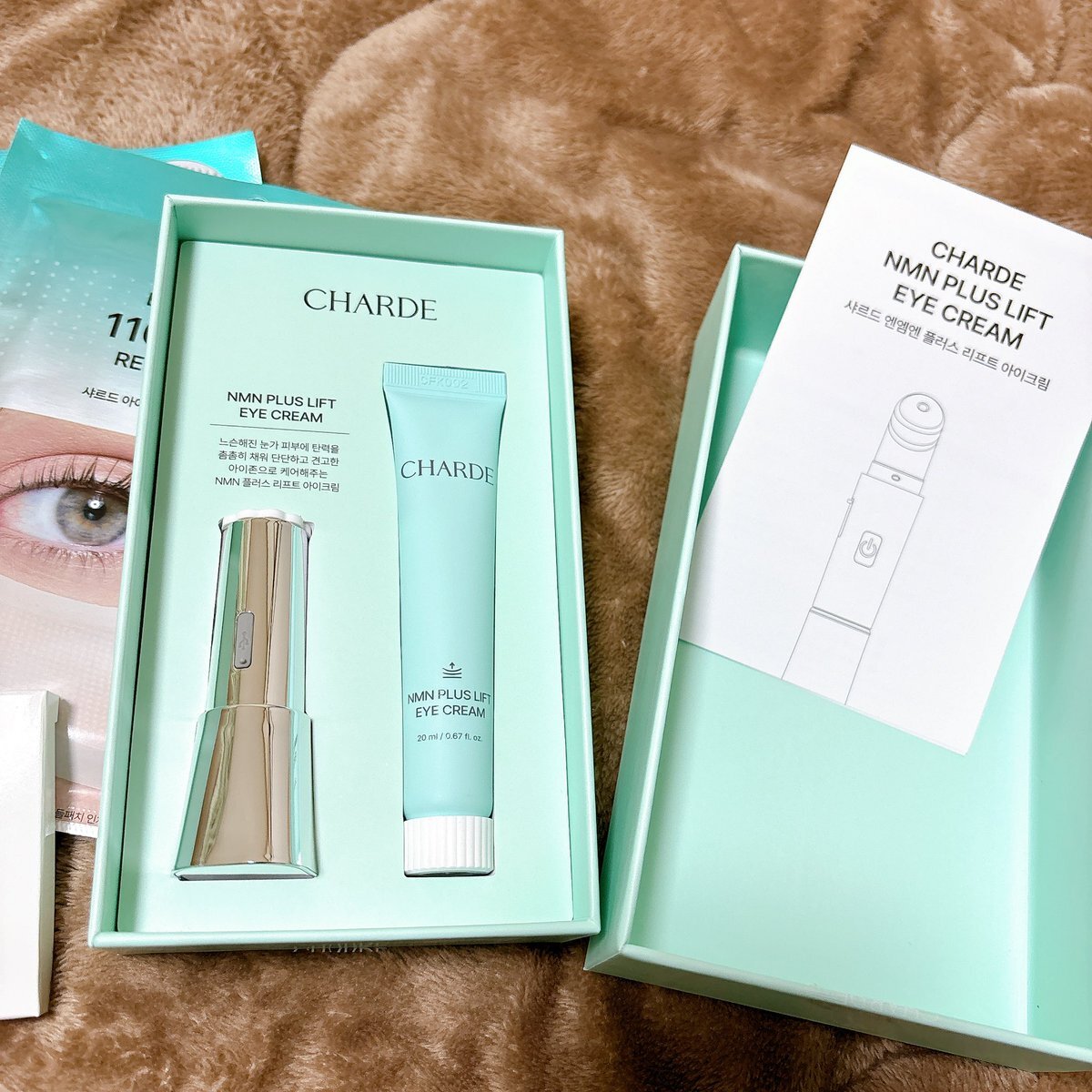 #CHARDE #NMNプラスリフト振動アイクリーム #目元ケア #美顔器 #美容液 #韓国コスメ 高級感のあるミントカラーの箱に入っていました。振動するアイクリームは始めてでしたが、温感も相まって、目元への浸透が良い気がしました。おまけも付いていて、これから目元ケアを頑張ろうと思いました。 pic.x.com/twLAh5cbK7