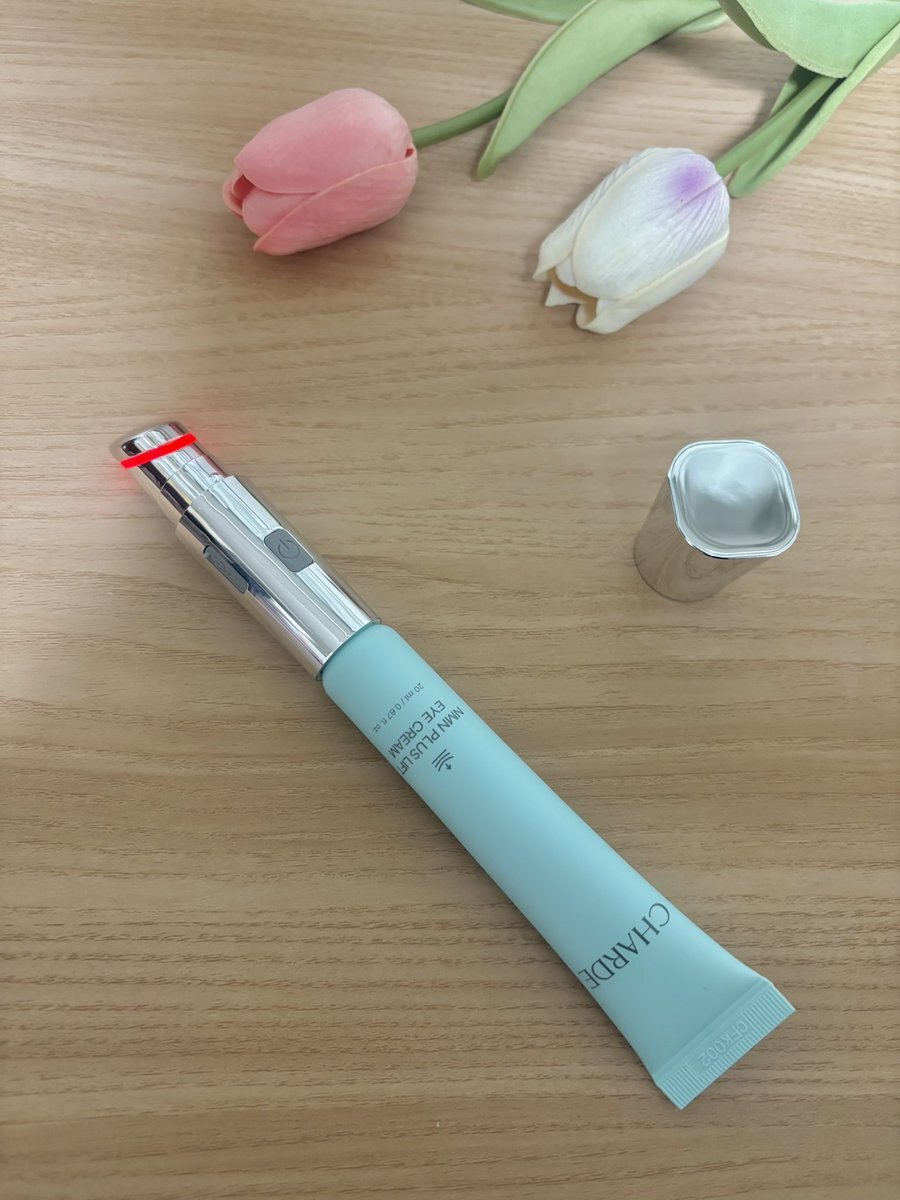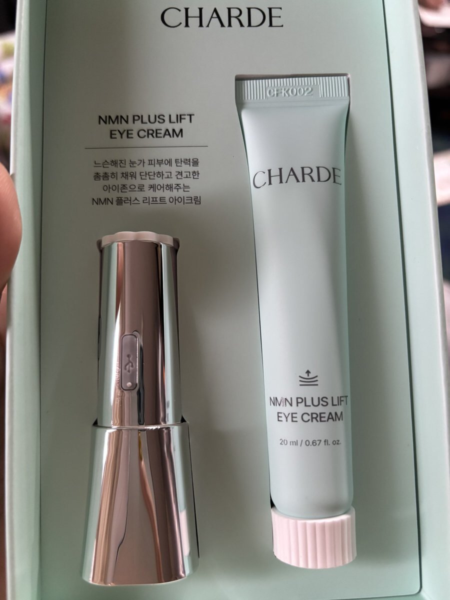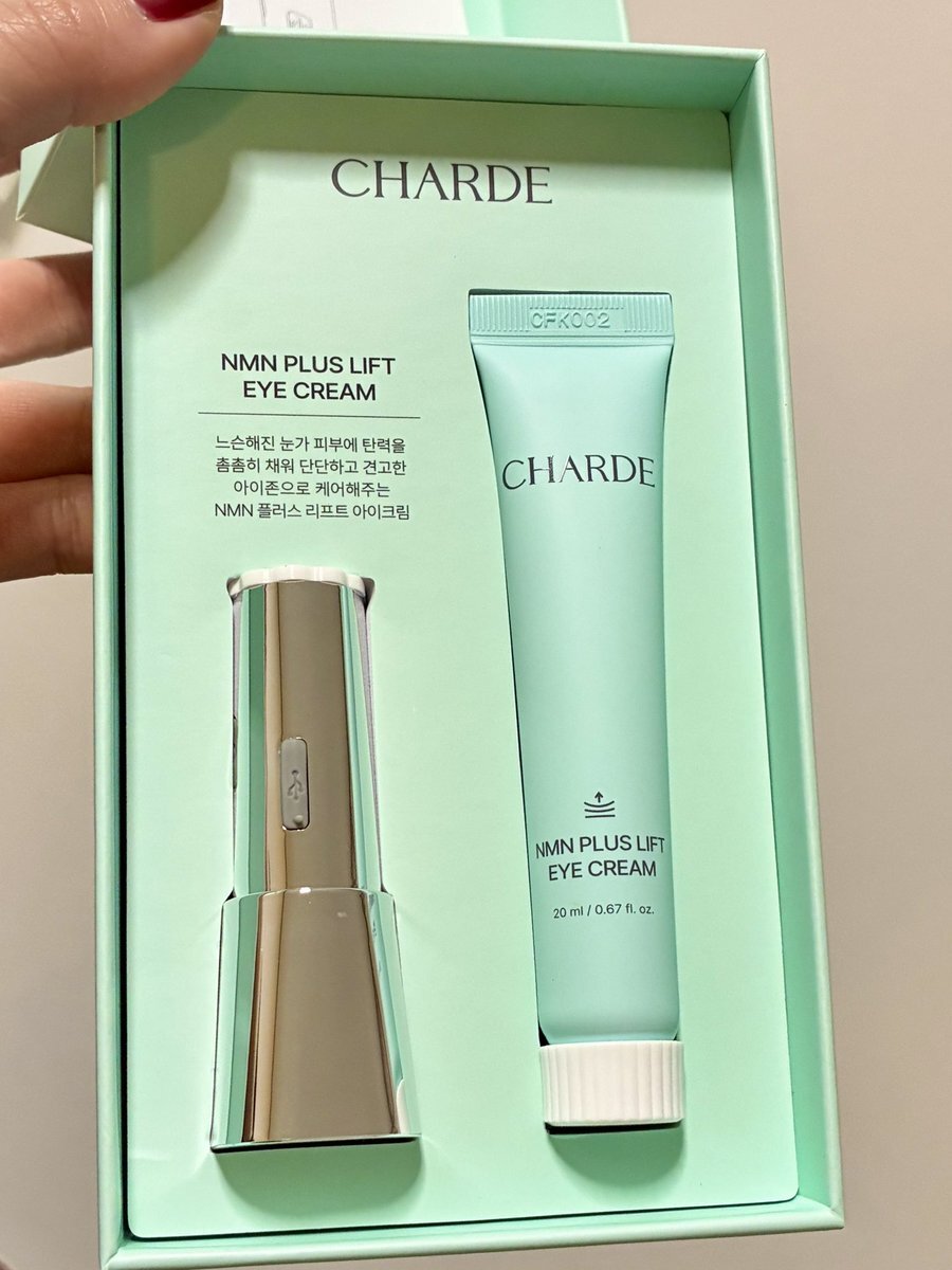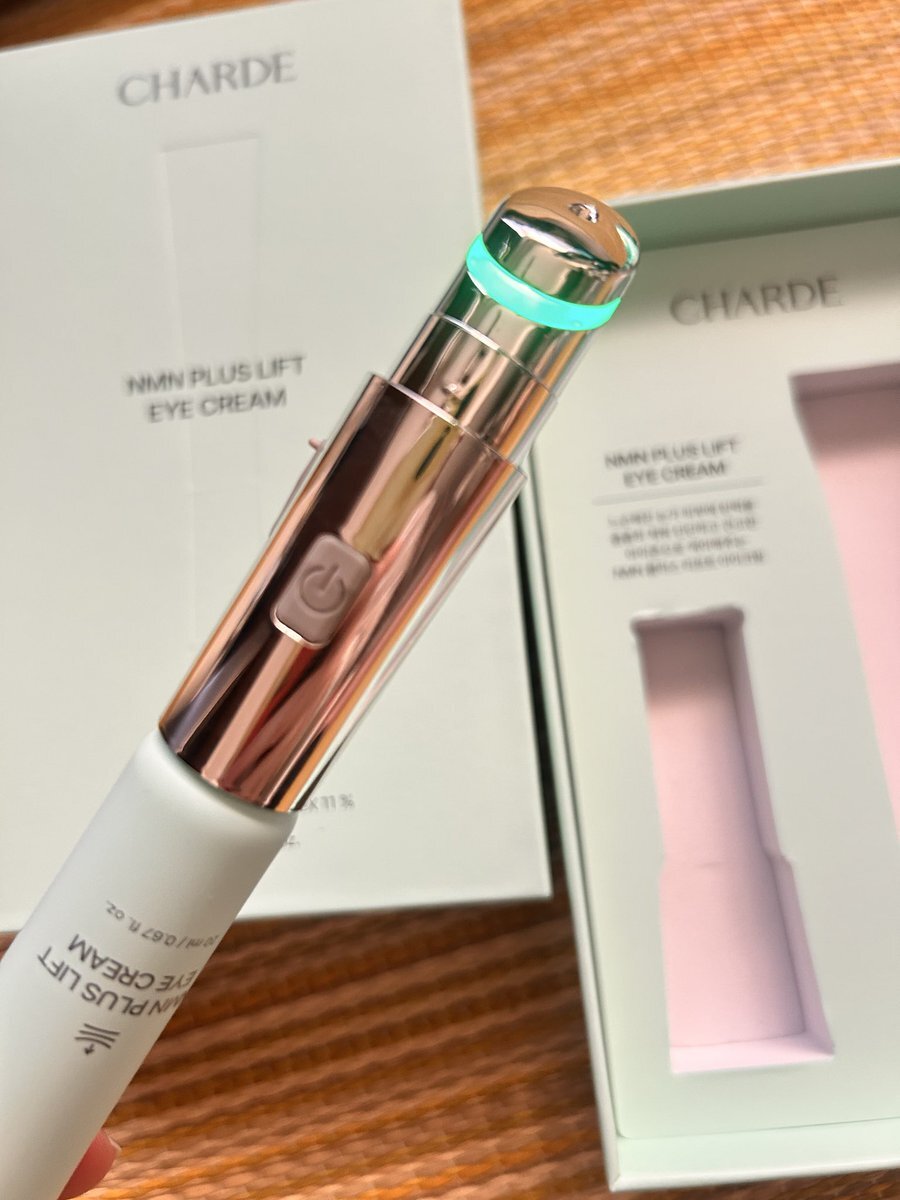 美顔器と一体化したクリームは初めて見ました。おまけも豪華でコスパも良いと思います。 クリームが温まって振動もあるので普通に塗るより効果が高い気がします。目元に張りが出るのが嬉しい! #CHARDE #NMNプラスリフト振動アイクリーム #目元ケア #美顔器 #美容液 #韓国コスメ pic.x.com/qHkPHw0qi7