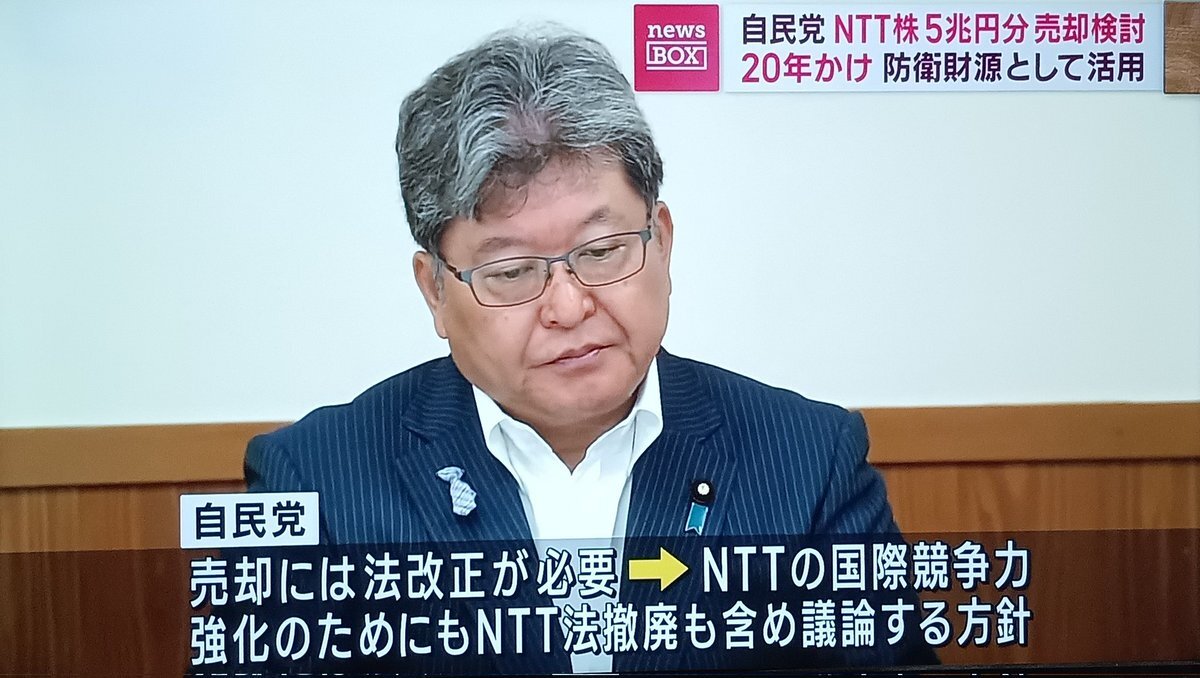 NTTを失ってしまったら、有事の際に電話など通信が使えなくなるということも起こり得る。こんなリスクも考えず、防衛財源のためにNTT売却に動いている。自民党は国防など全く考えていないことの証明。 #NTT法廃止で日本は滅ぶ #売国止めろNTT守れ pic.x.com/2wo2Keo8A3