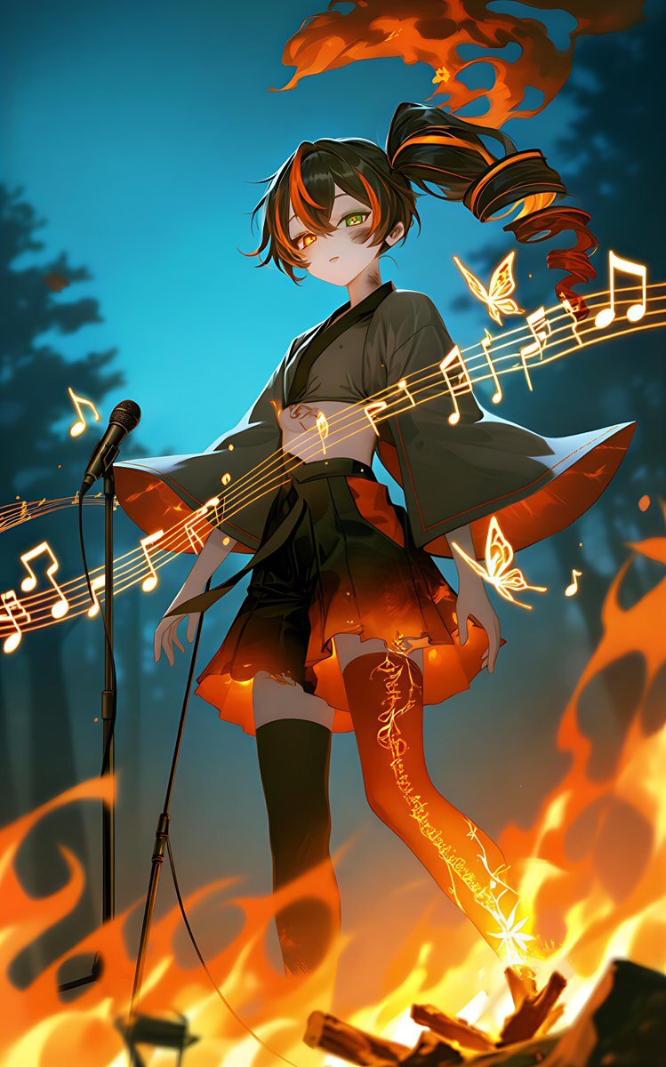 ユカをご紹介!私の最新AIアート作品です!🔥 炎と音楽の魂が輝きます!🌟 こんなキャラクターを作る方法を学びたい?無料ヒントをフォローで!🎶 #AIArt #CharacterDesign #NoCode pic.x.com/87UkNL1W0D