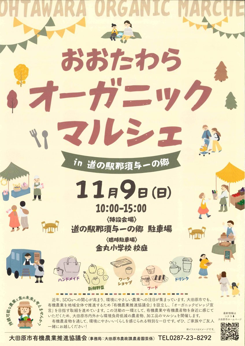 「おおたわらオーガニックマルシェ」初開催✨ #大田原市 では「#オーガニックビレッジ宣言」を目指す取組を進めています☺️ #有機農業#有機農産物 を身近に感じてみませんか❓ 皆様ぜひお越しください♫ x.gd/APgsI #オーガニック #Nowとち #楽しむ #環境にやさしい農業 pic.x.com/TBdKD8rkA0