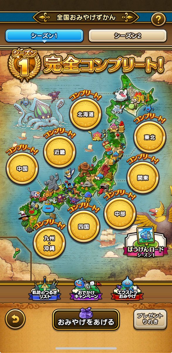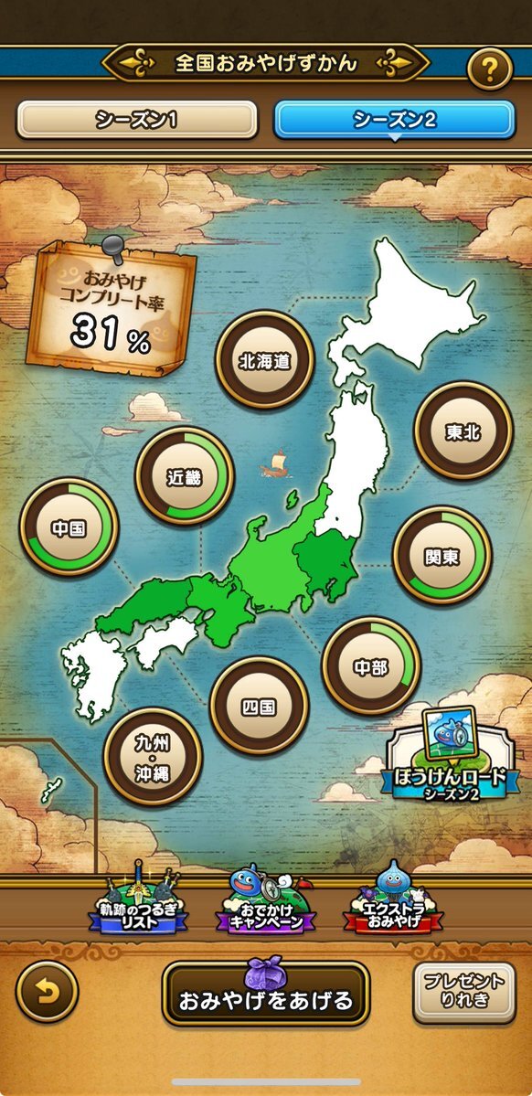 【ドラクエウォーク おみやげシーズン2】 #Nsaoiのドラクエウォークおみやげ旅 今日までで31%、30箇所 今週の仙台までは遠征あるから 今年どこまで行けるかかなぁ #ドラクエウォーク6周年 #ドラクエウォーク #DQW pic.x.com/JkDl4a1f3R x.com/no_blue_no/sta…