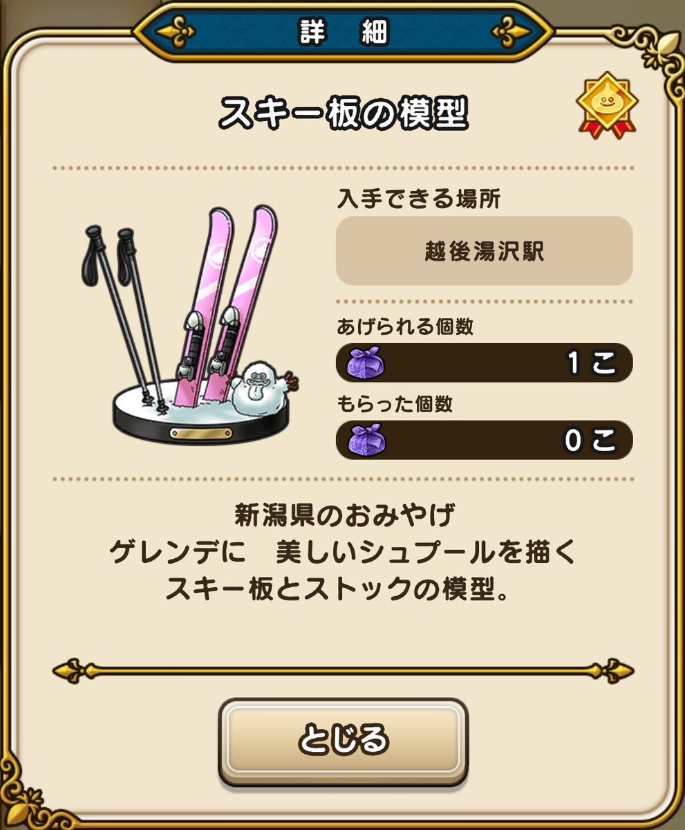 【ドラクエウォーク おみやげシーズン2】 #Nsaoiのドラクエウォークおみやげ旅 新潟県 越後湯沢駅 道路から可能◎ 水上温泉から下道1時間程🚙 ⚠️道中、駅周りは雪が降っているのでそろそろスタッドレスタイヤ必要です #ドラクエウォーク6周年 #ドラクエウォーク #DQW pic.x.com/ckaSYDoEGi